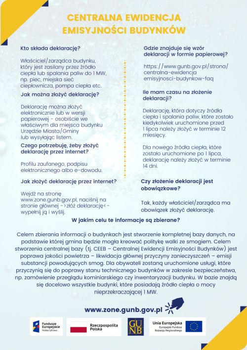 Więcej informacji na stronie GUNB: www.gunb.gov.pl/strona/centralna-ewidencja-emisyjnosci-budynkow-faq