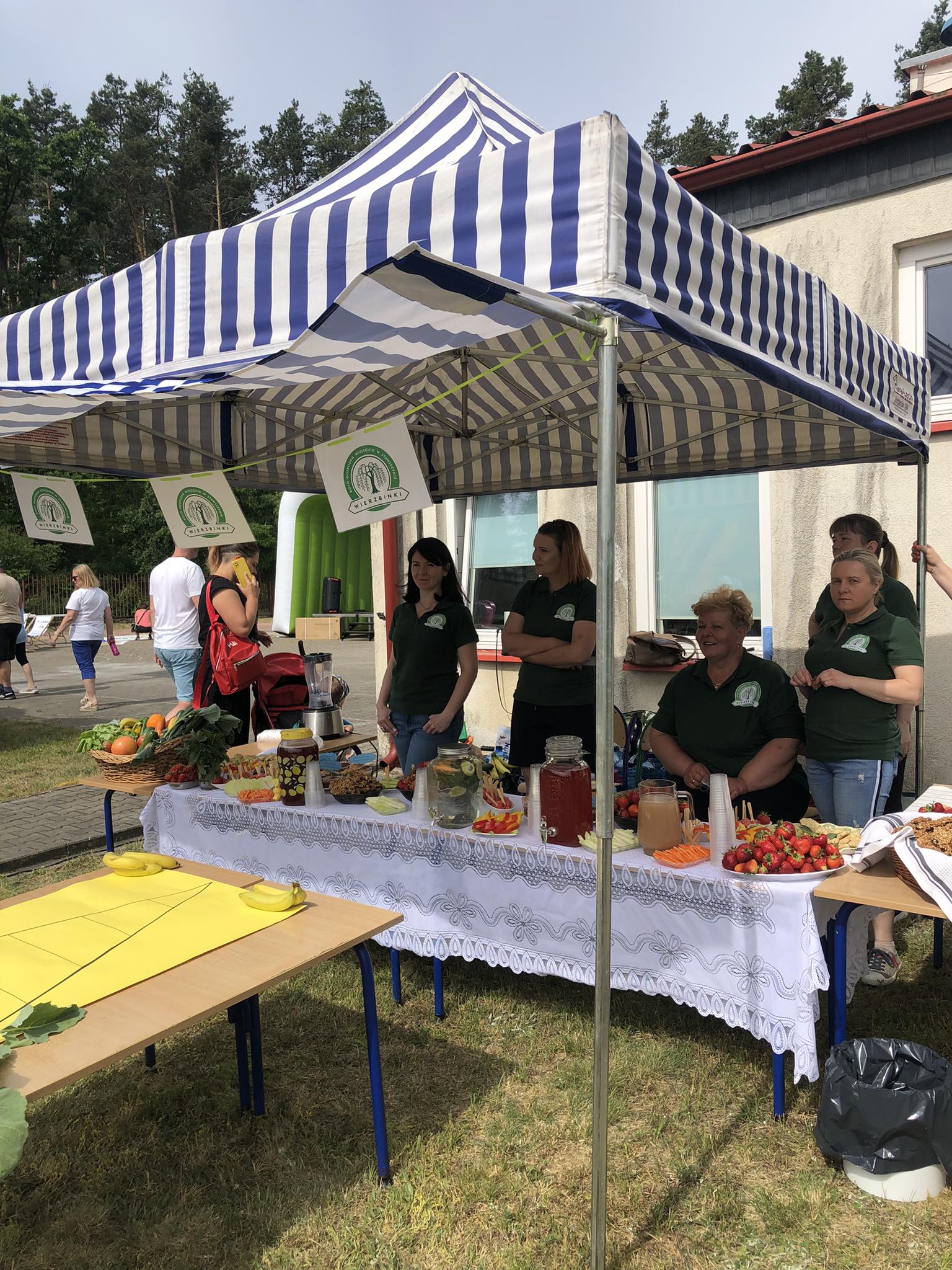 Na uczestników zabawy czekały pyszne, ekologiczne i bardzo zdrowe przekąski takie jak ciasteczka owsiane, ciasteczka z ziarnami słonecznika, dyni i bakalii, owoce i warzywa oraz soki i napoje przygotowane przez Koła Gospodyń Wiejskich z Suchej „Szlacheckie Susanki” i ze Stawiszyna „Wierzbinki”.