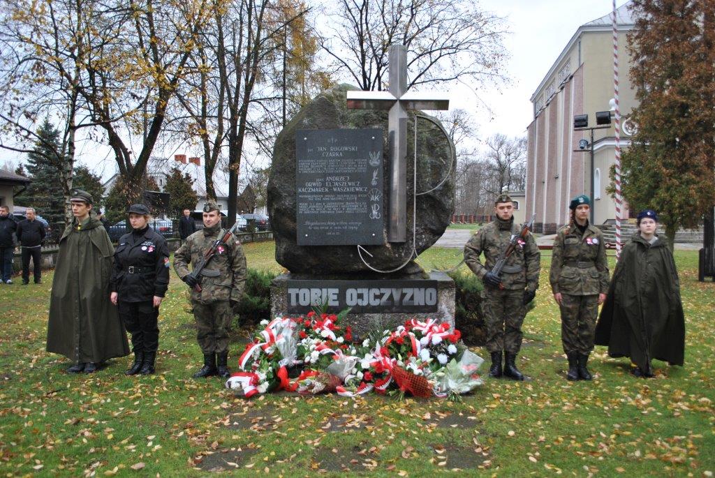Przed pomnikiem delegacje samorządów, instytucji oraz organizacji oddały hołd wszystkim, którzy walczyli o wolność naszej Ojczyzny, składając okolicznościowe wiązanki kwiatów. Wszyscy uczestnicy udali się przed Ratusz, gdzie odbyła się główna część ceremonii. Uroczysta Msza Świętą za ojczyznę, apel poległych, ślubowanie uczniów klas mundurowych, parada wojskowa, salwa honorowa, występy chóru uczniów Zespołu Szkół Ponadgimnazjalnych oraz Szkoły Podstawowej Nr 1 w Białobrzegach, orkiestry dętej sił powietrznych oraz obecność pocztów sztandarowych pozwoliły na godne i pełne podniosłych chwil przeżywanie tego Święta.