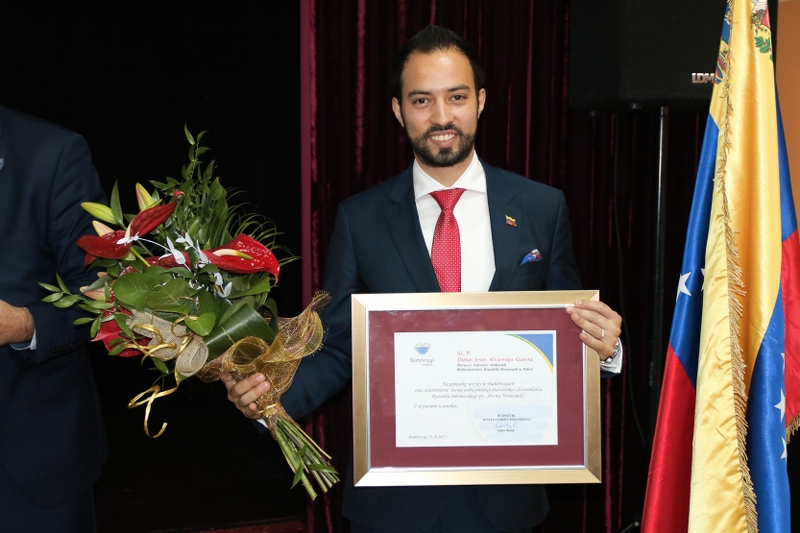 Na pamiątkę wizyty otrzymywał z rąk Sławomira Bieleckiego - Sekretarza Miasta i Gminy okolicznościowy dyplom. Wizyta Sekretarza Ambasady Wenezueli był związana z promocją tego kraju podczas zorganizowanej przez MGOK w Białobrzegach prelekcji podróżnika i reportera Ryszarda Sobolewskiego pn. „Poznaj Wenezuele”.