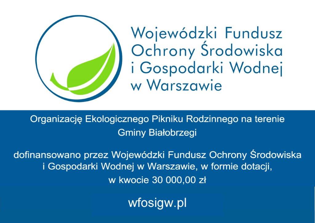 - Organizacja Ekologicznego Pikniku Rodzinnego na terenie Gminy Białobrzegi