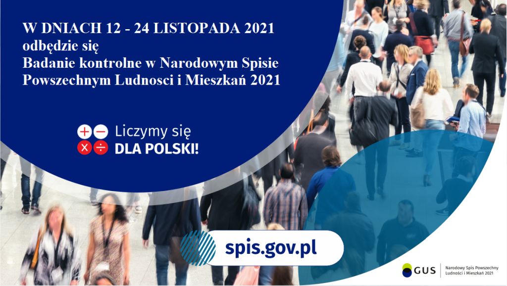 Uprzejmie informuję, że od 12 do 24 listopada 2021 r. Główny Urząd Statystyczny będzie prowadził badanie kontrolne w Narodowym Spisie Powszechnym Ludności i Mieszkań 2021 na próbie 100 000 spisanych mieszkań. Ankieterzy statystyczni będą kontaktować się telefonicznie, z numeru 22 828 88 88 z pełnoletnią osobą , która w spisie była pierwszym respondentem (reprezentantem mieszkania). W trakcie wywiadu kontrolnego będą zadawane pytania dotyczące : m.in. miejsca zamieszkania 31 marca 2021 r., poziomu wykształcenia, własności mieszkania, sposobu realizacji spisu.
