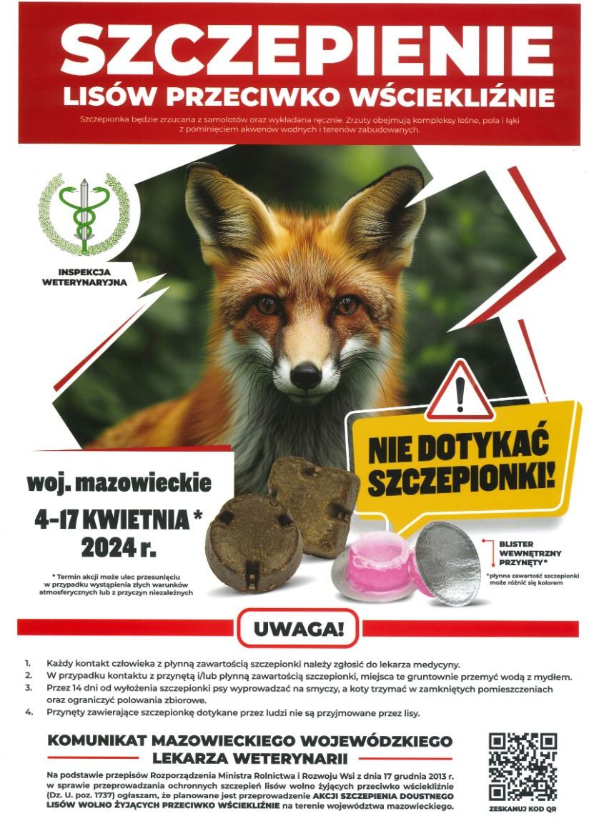 • Przez 14 dni od wyłożenia szczepionki psy wyprowadzać na smyczy, a koty trzymać w zamkniętych pomieszczeniach oraz ograniczyć polowania zbiorowe.