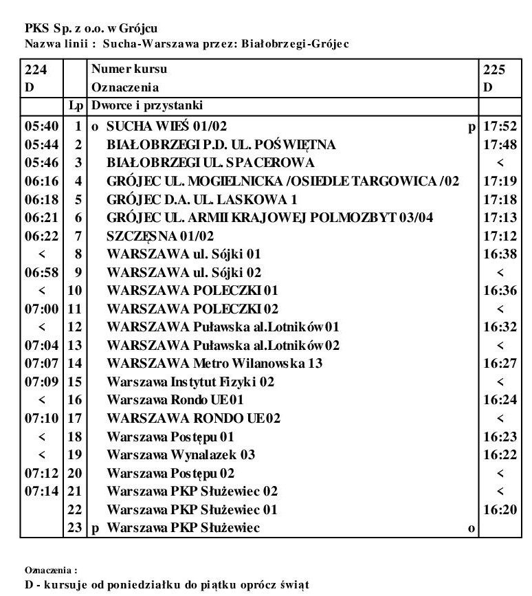 Informujemy, że bilety na autobus linii Sucha - Warszawa przez Białobrzegi-Grójec można kupić przez Internet