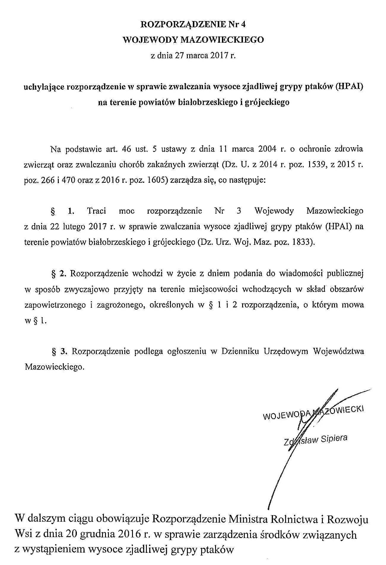 Rozporządzenie uchylające rozporządzenie w sprawie grypy HPAI na terenie powiatu białobrzeskiegoOdsłony: 1426