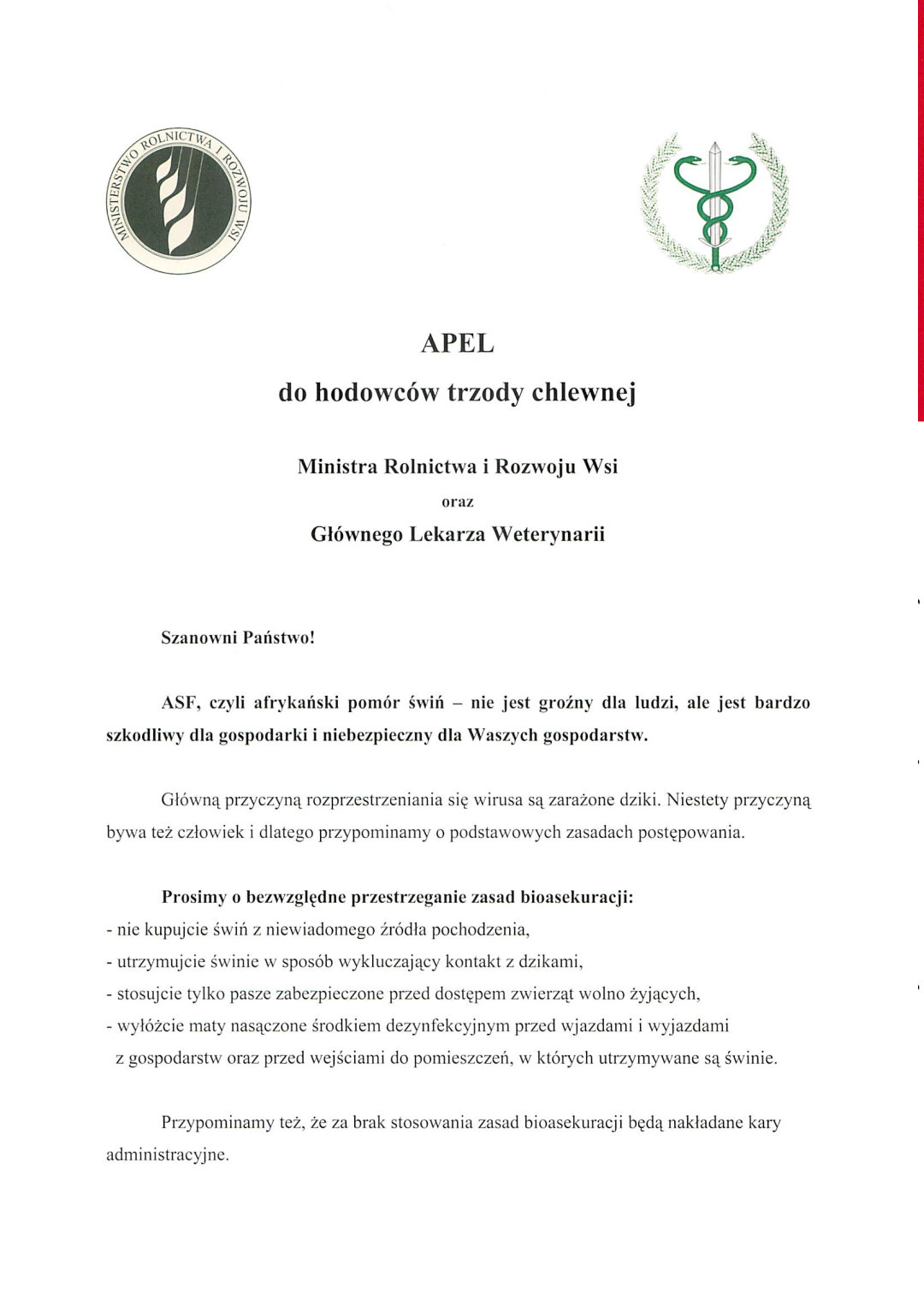 Informacja zamieszczona na stronie MiRiRW