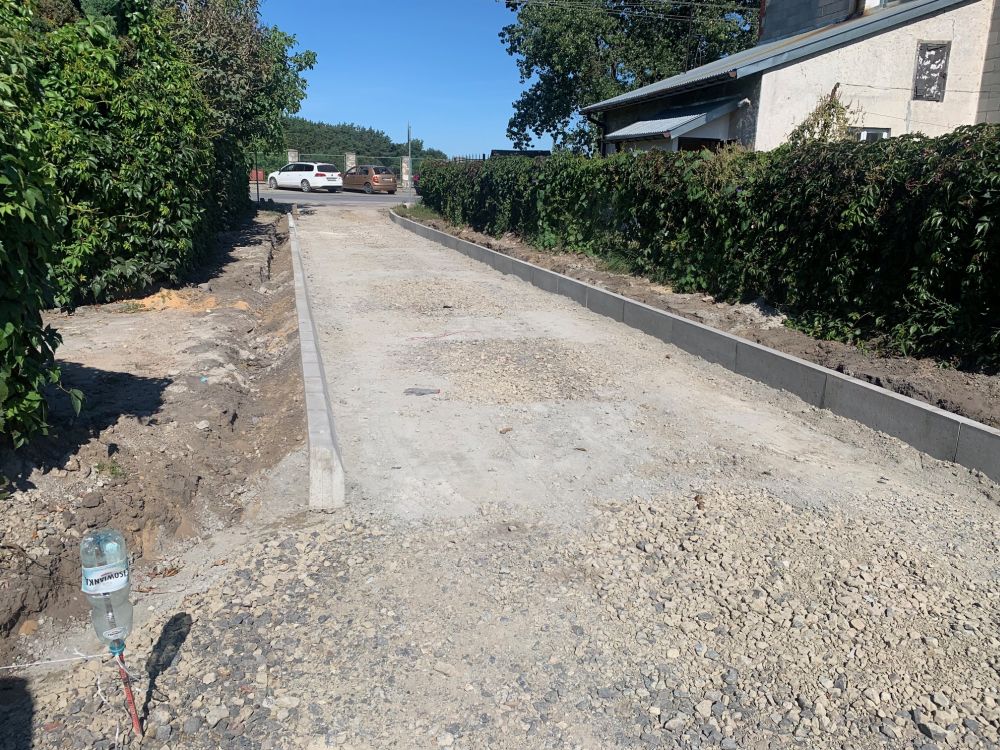 Trwa układanie krawężników i podbudowy w dwóch uliczkach odchodzących od ulicy Kościelnej w kierunku południowym. Jedna prowadzi do betoniarni i wspólnoty mieszkaniowej druga w kierunku zakładu Zbyszko. Obydwie uliczki wykonane zostaną w kostce brukowej. Prace potrwają jeszcze około jednego tygodnia.