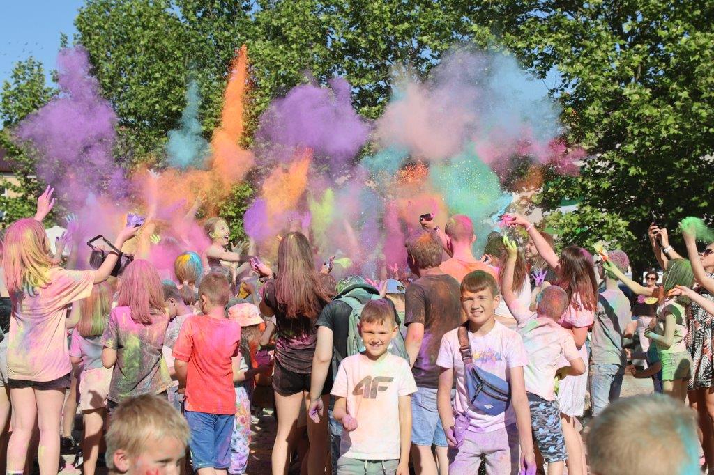 Od rana mali artyści z placówek oświatowych gminy Białobrzegi oraz Białobrzeskiego Centrum Kultury „Białe Brzegi” mogli zaprezentować swoje talenty na scenie, zatańczyć, zaśpiewać i przede wszystkim pokazać swój talent szerszej publiczności. Tuż po występach przyszedł czas, by swobodnie korzystać z atrakcji oferowanych przez organizatorów i animatorów. Od godziny 16.00 Plac Zygmunta Starego zmienił swoje oblicze – pojawiła się eksplozja kolorów – barwne smugi, kolorowe ubrania i fryzury to oznaka Święta Holi (które swoje korzenie ma w Indiach). Holi świętuje się rzucając w siebie nawzajem barwnym proszkiem, dając upust pozytywnym emocjom. Białobrzeski Festiwal Kolorów to święto radości, które zagościło już na stałe w harmonogramie wydarzeń Urzędu Miasta i Gminy Białobrzegi oraz Białobrzeskiego Centrum Kultury. Oprawę muzyczną podczas świętowania pełnił Dj Big Karol.