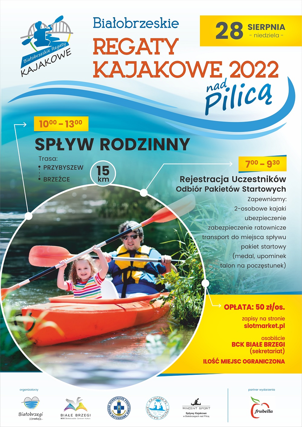 Regaty kajakowe współorganizują firmy zajmujące się wypożyczaniem kajaków nad Pilicą: Kajaczek.pl, Wincent Sport oraz WOPR w Białobrzegach.