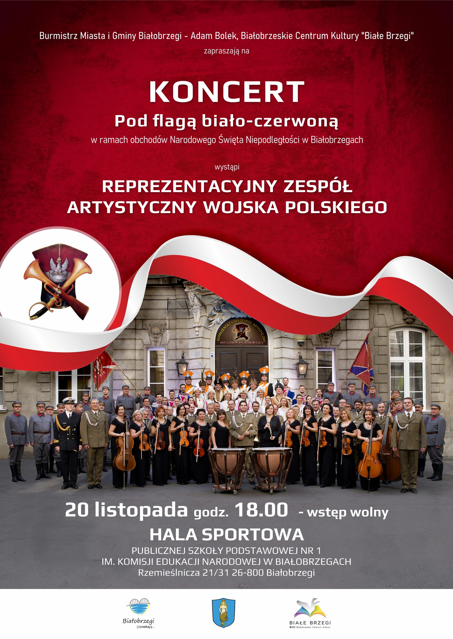W najbliższą niedzielę 20 listopada o godz. 18.00 w sali gimnastycznej szkoły podstawowej nr 1 w Białobrzegach odbędzie się koncert Reprezentacyjnego Zespołu Artystycznego Wojska Polskiego w ramach obchodów Narodowego Święta Niepodległości.