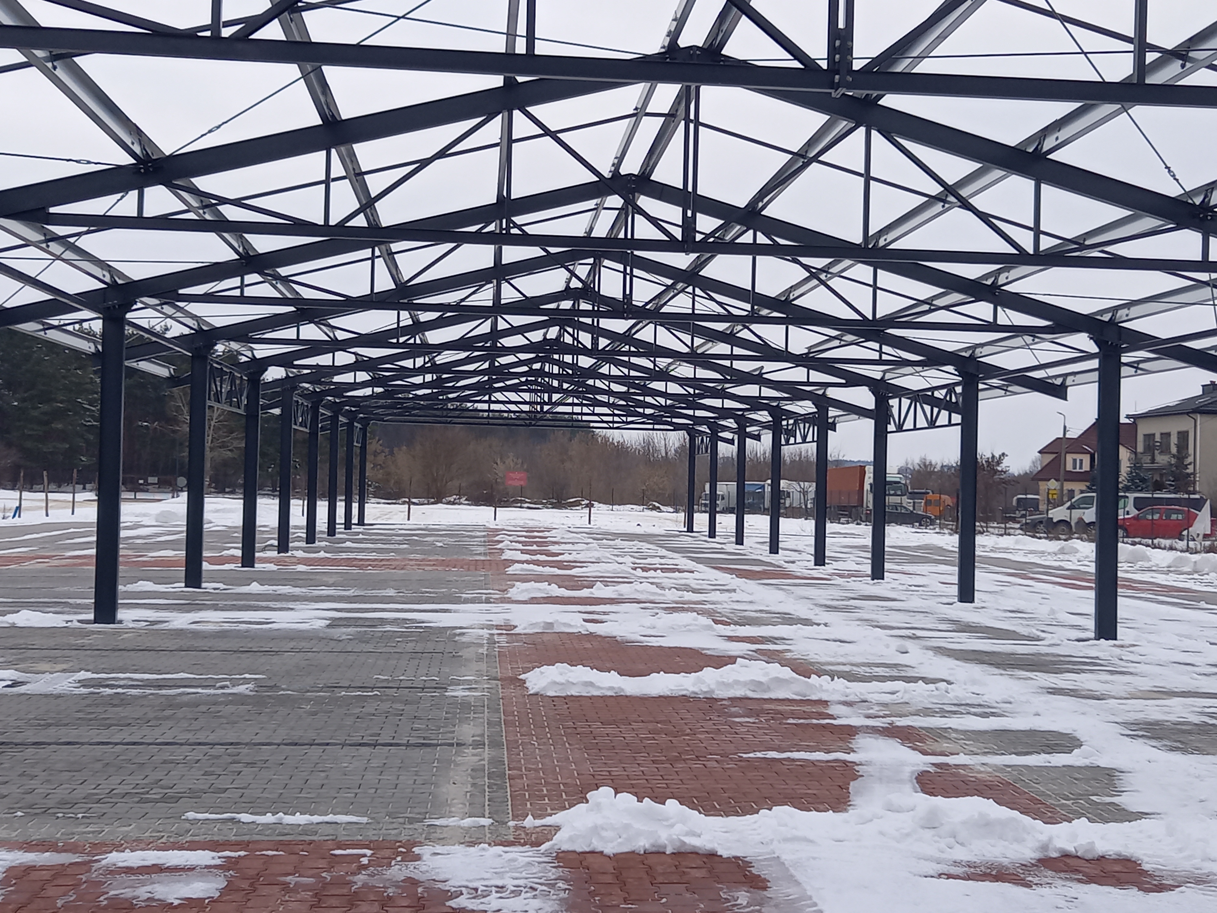 Trwają prace końcowe na białobrzeskim targowisku. Wykonawca rozpoczął montaż wiat handlowych. Zadanie p.n. „Mój rynek – przebudowa targowiska miejskiego w Białobrzegach, etap II”, realizowane jest ze środków Unii Europejskiej i gminy Białobrzegi.