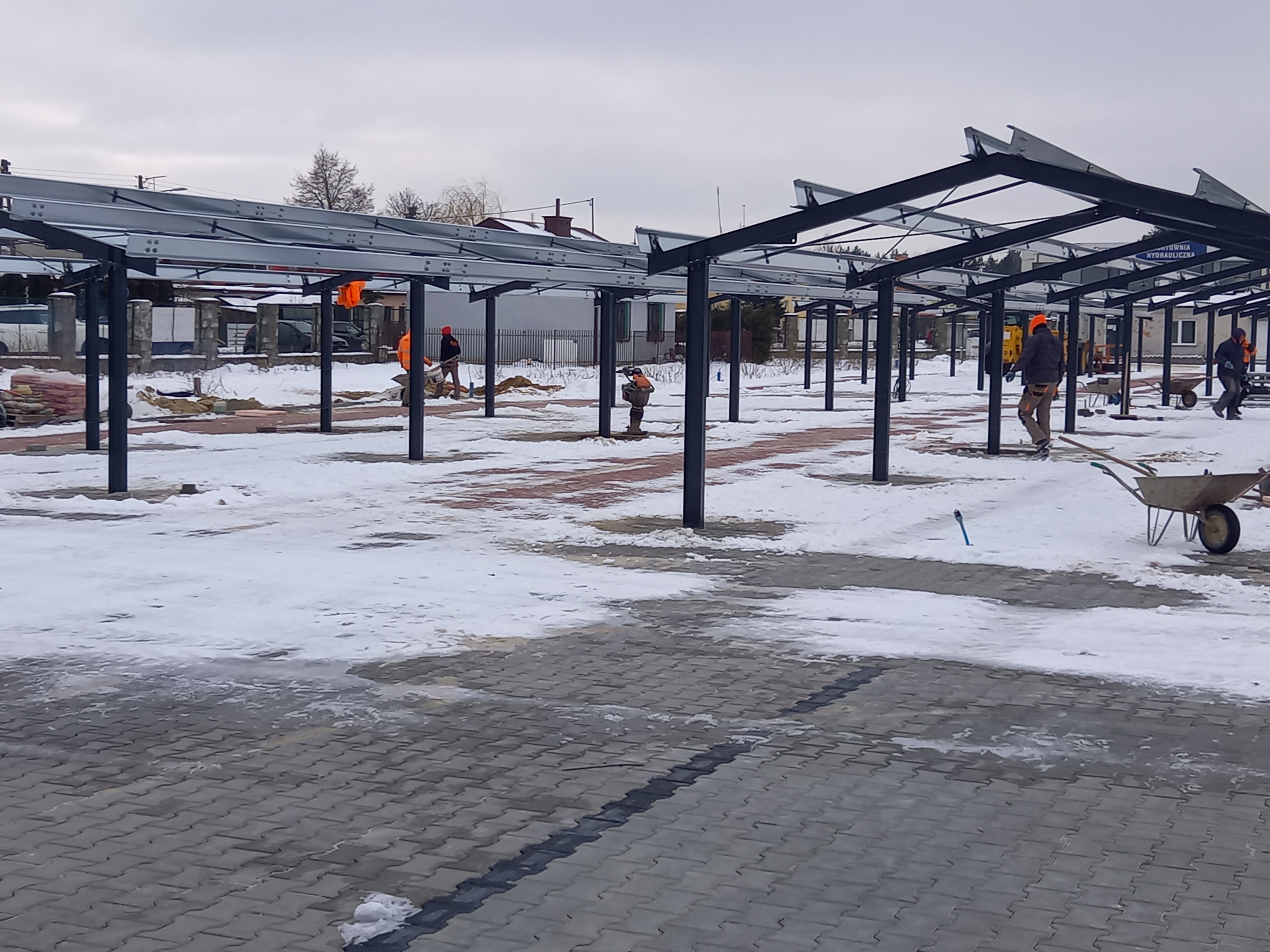 Przebudowa jest II etapem prac na targowisku. Kilka lat temu zmodernizowano zachodnią część placu targowego. Tym razem przebudowywana jest południowa strona od ulicy Kościelnej. Zakończyły się prace brukarskie oraz odwodnieniowe. Trwa montaż wiat handlowych. Do wykonania pozostała jeszcze instalacja elektryczna pod wiatami oraz montaż słupów oświetleniowych oraz zagospodarowanie terenów zielonych. Prace powinny zakończyć się z końcem lutego b.r.