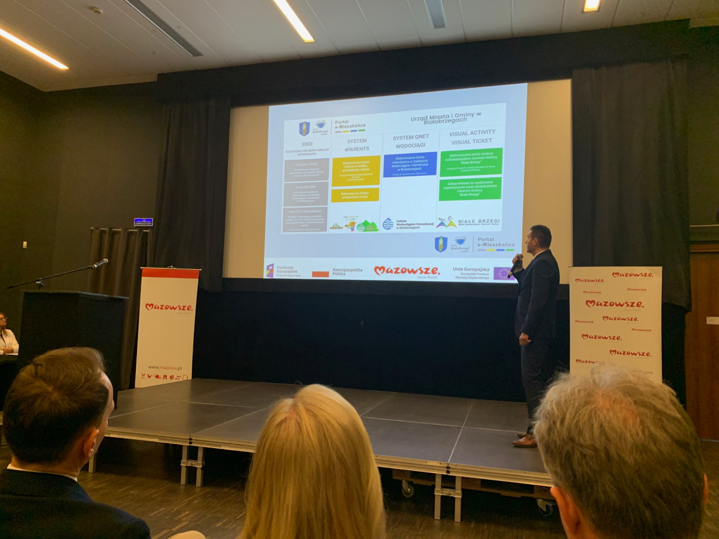 Gmina Białobrzegi tytuł „Samorządowy Lider cyfryzacji” otrzymała w kategorii „Ponad codzienność”. Portal e-Mieszkańca został doceniony za implementację e-usług dla mieszkańców. Nagrodę z rąk marszałka woj. mazowieckiego Adama Struzika odebrali burmistrz Adam Bolek i sekretarz gminy Sławomir Bielecki, który również poprowadził prelekcję, przedstawiającą Portal e-Mieszkańca.