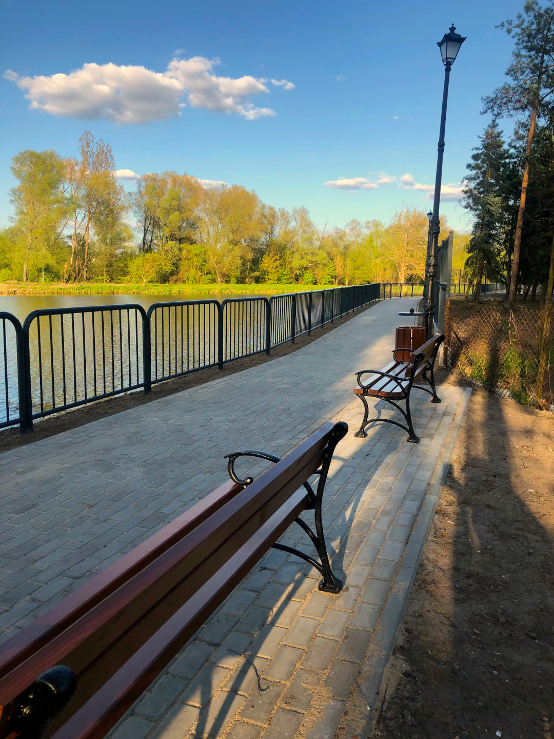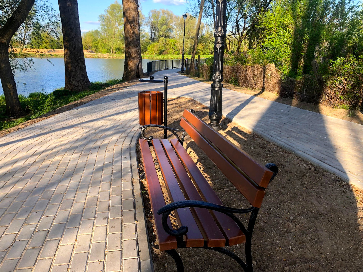 Wzdłuż południowego brzegu jeziora wschodniego powstał chodnik z kostki betonowej o szerokości 2 m. Umocniono skarpę zbiornika, na której powstała półka skarpowa oraz wzmocniona została linia brzegowa. Całość uzupełniły ławki, kosze na śmieci oraz oświetlenie zewnętrzne terenu. Chodnik od jeziora oddziela barierka. Wkrótce zainstalowany zostanie monitoring wizyjny oraz na chodniku dopuszczony będzie ruch rowerowy. Bulwar połączył ulicę Krakowską z ulicą Cichą.