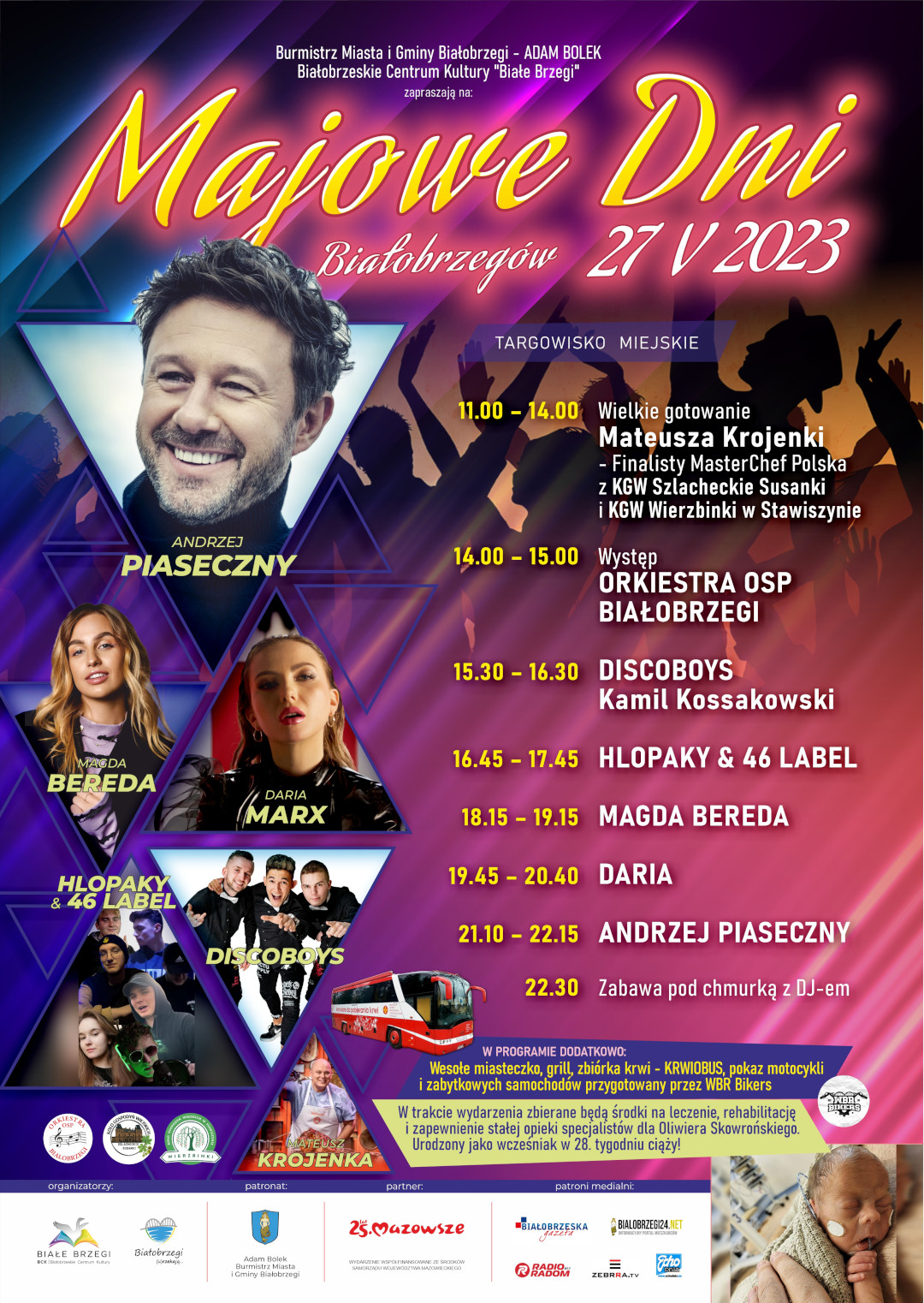 W sobotę 27 maja odbędą się Majowe Dni Białobrzegów. Gwiazdą tegorocznej edycji będzie Andrzej Piaseczny. Na białobrzeskiej scenie wystąpią również znani i lubiani artyści polskiej sceny muzycznej.