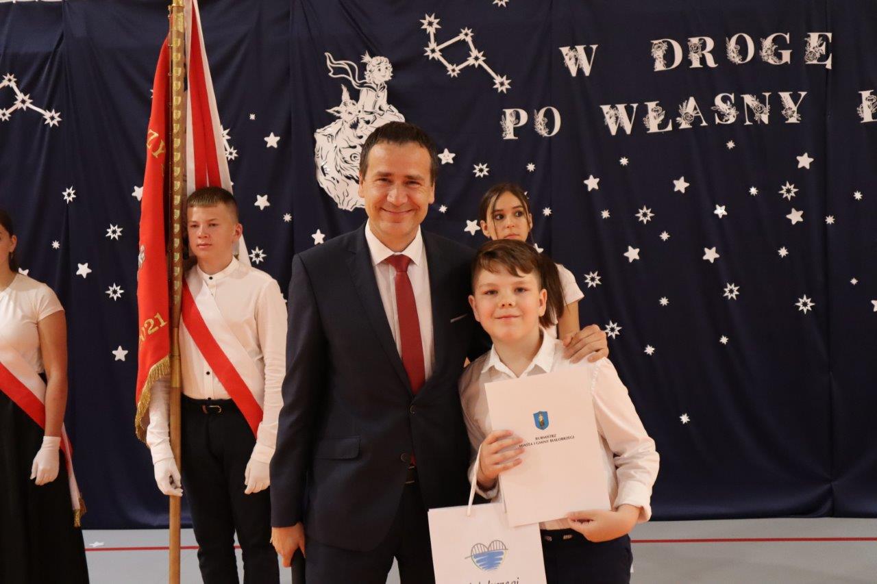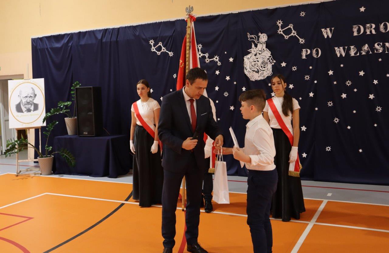 Na uroczystościach obecni byli burmistrz Adam Bolek oraz naczelnik wydziału oświaty, kultury i sportu Wiesława Sroka. W obu placówkach oświatowych wręczona została Nagroda Burmistrza dla najlepszego ucznia szkoły. W szkole podstawowej nr 1 Nagrodę Burmistrza otrzymał Maksymilian Michalak; w szkole podstawowej w Suchej Aleksander Moszumański.
