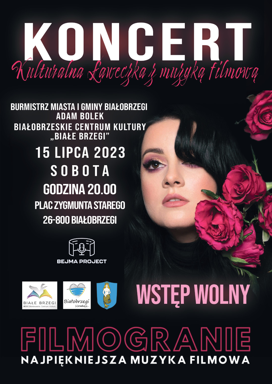 Białobrzeskie Centrum Kultury Białe Brzegi serdecznie zaprasza na wyjątkowy koncert z najpiękniejszymi utworami filmowymi z Polski i ze świata. BEJMAproject to bardzo kolorowa koncepcja, która realizowana jest w artystyczny sposób. Kameralna, jednak wyrazista barwa występu pokaże szerokie spektrum działania i umiejętności wokalistki jak i towarzyszących jej muzyków (pianino, gitara, saksofon). Przy takiej odsłonie występu i zróżnicowanym repertuarze, każdy znajdzie coś dla siebie – można przyjemnie spędzić czas na wspólnym śpiewaniu, a nawet tańczeniu, odpocząć od codziennych spraw, a także pokusić się o wewnętrzne przemyślenia. Serdecznie zapraszamy.