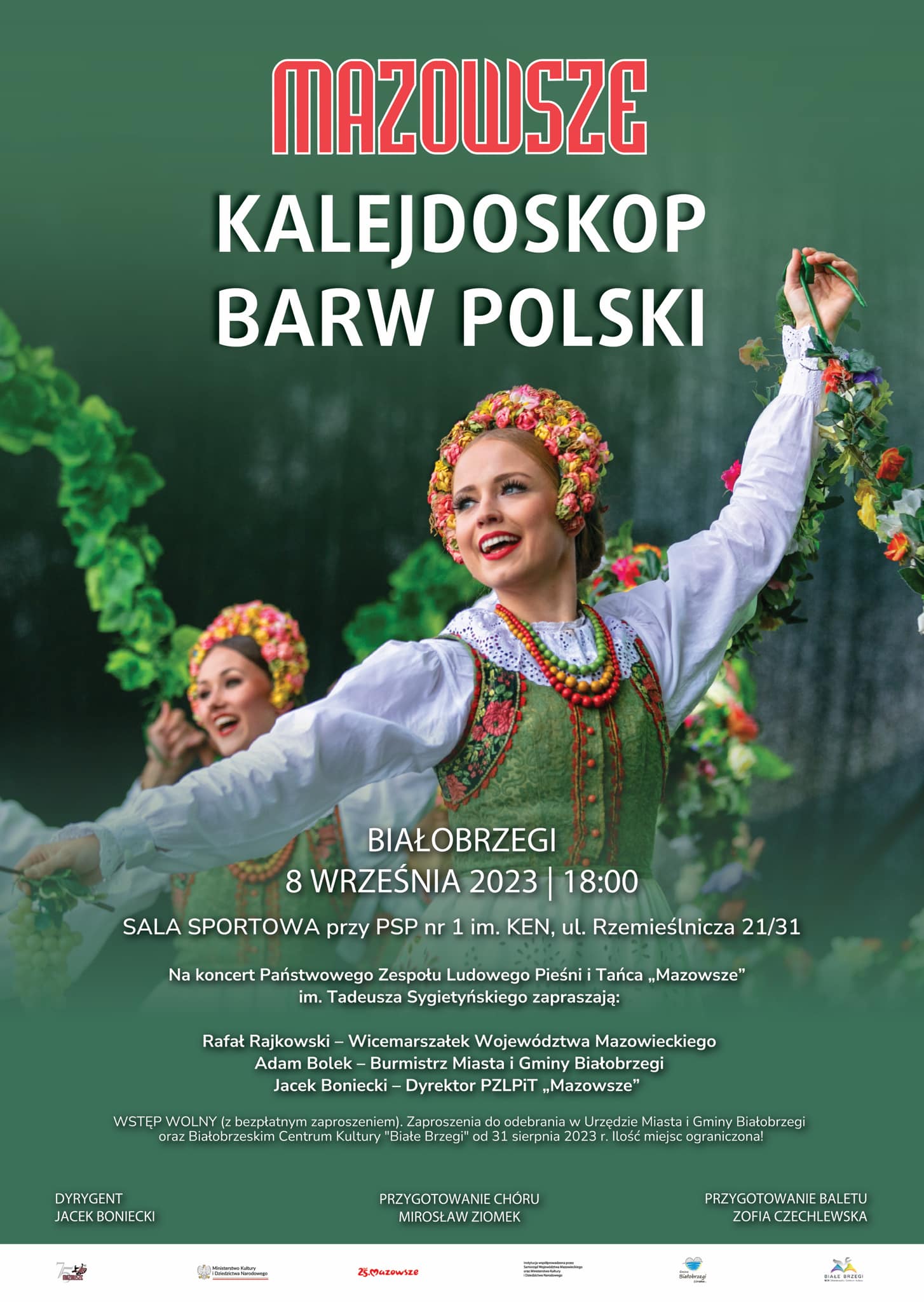 Na koncert zapraszają: wicemarszałek woj. mazowieckiego Rafał Rajkowski, burmistrz Miasta i Gminy Białobrzegi Adam Bolek oraz dyrektor zespołu Jacek Boniecki.