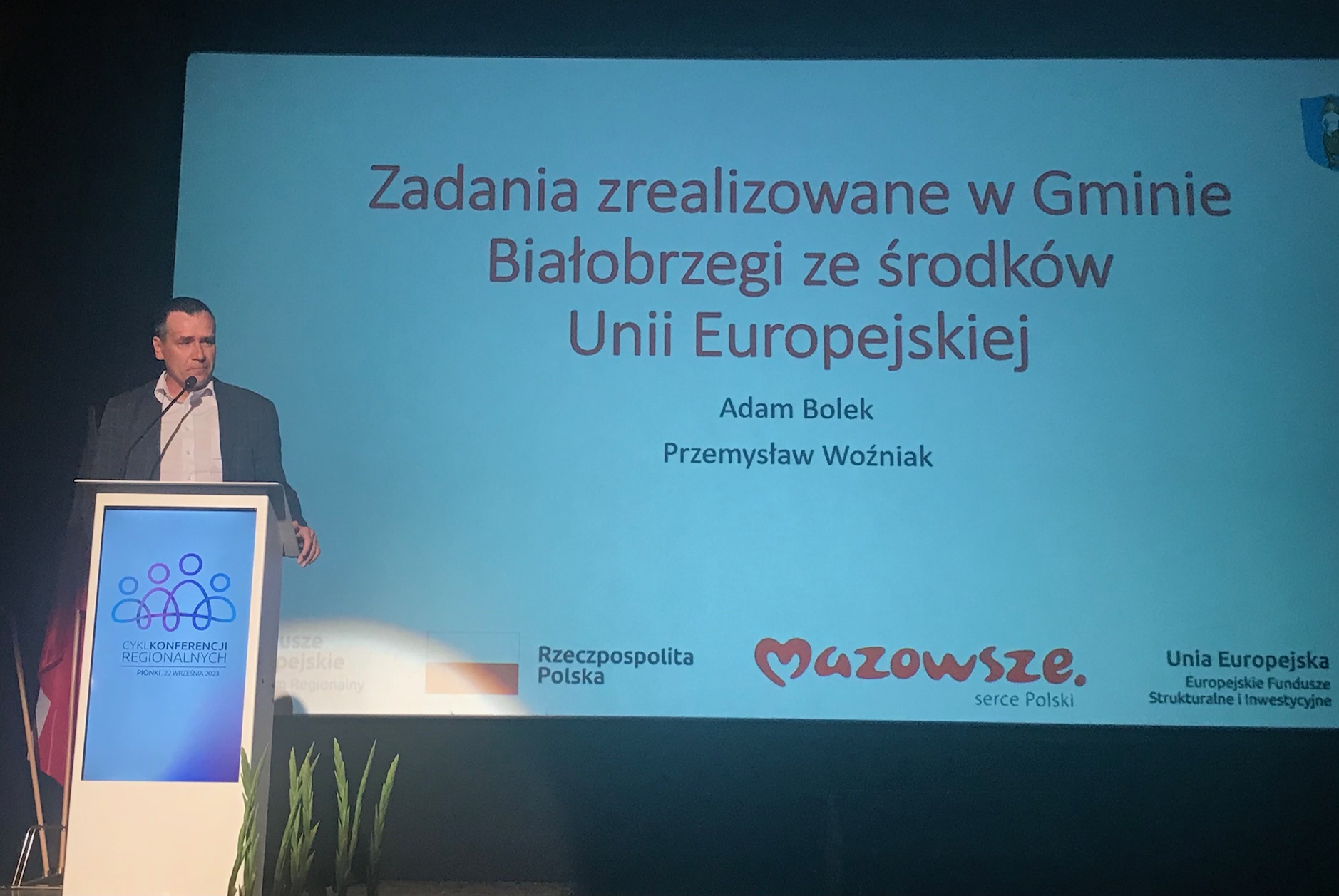 Burmistrz Adam Bolek i naczelnik wydziału inwestycji Przemysław Woźniak wzięli udział w konferencji, poświęconej nowej perspektywie pozyskiwania środków z Unii Europejskiej. Jednocześnie podsumowano dotychczasowe działania, których motorem było wsparcie samorządów ze środków UE. Burmistrz i naczelnik przedstawili przykłady realizacji zadań z udziałem środków pozyskanych przez białobrzeski samorząd z różnych programów Unii Europejskiej.