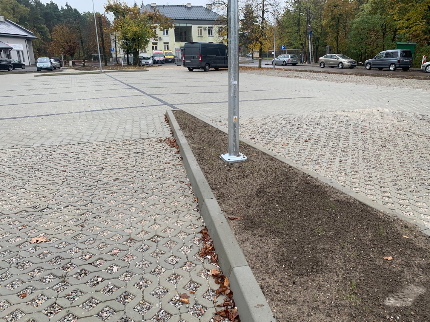 Prace związane z ułożeniem nowej nawierzchni na parkingu dobiegły końca. Nowy parking składa się z 60 miejsc postojowych oraz dróg wewnętrznych o szerokości 5 m. Nawierzchnia parkingu wykonana jest z kostki brukowej oraz płyt ażurowych, a cały teren o pow. 1.327m kw. oświetlony 6 lampami z oprawami typ LED.