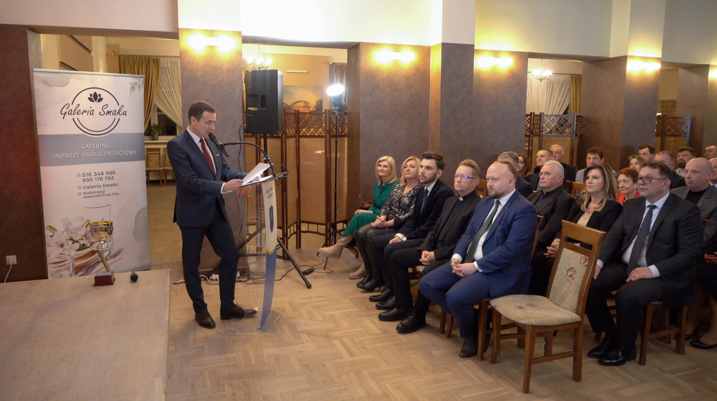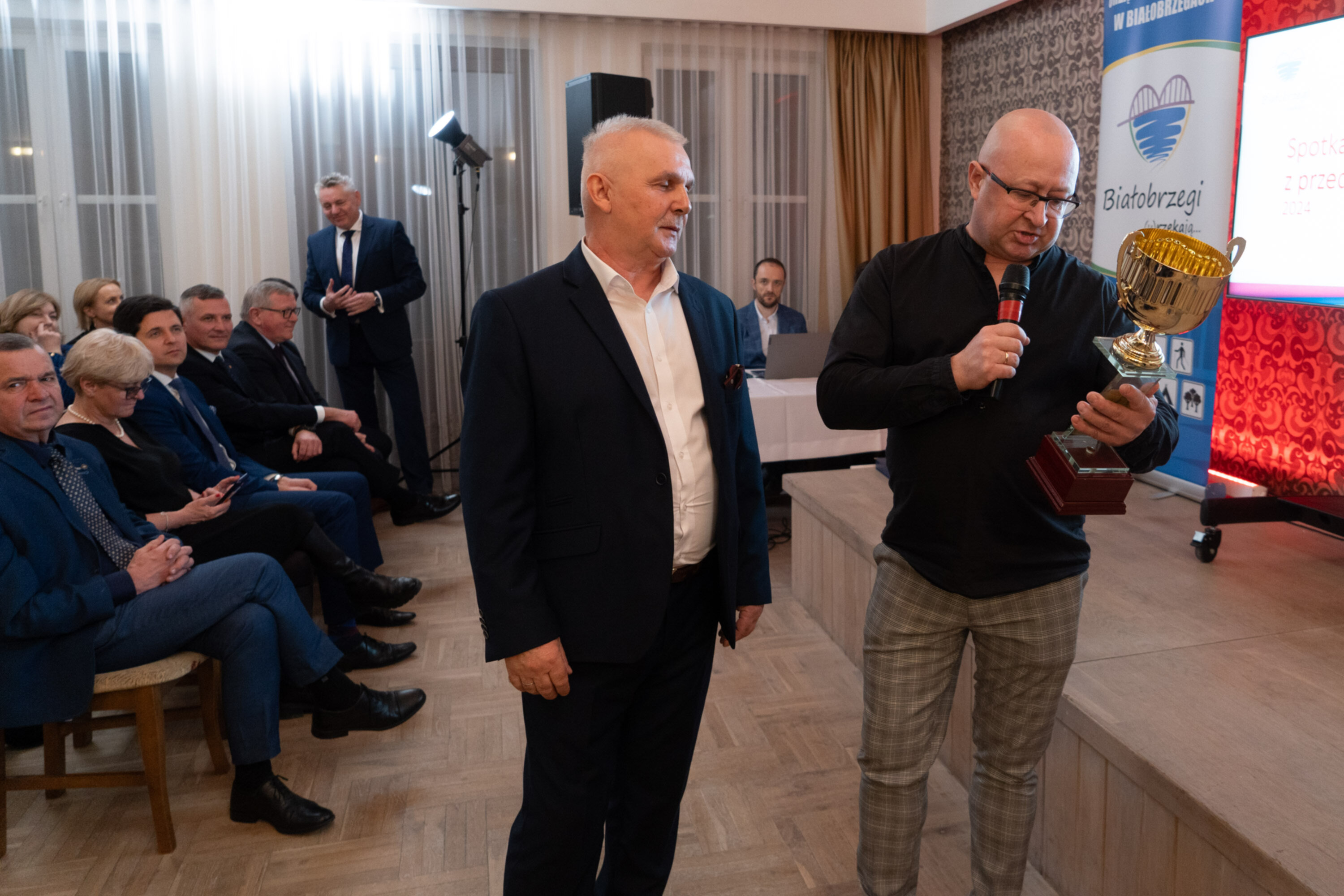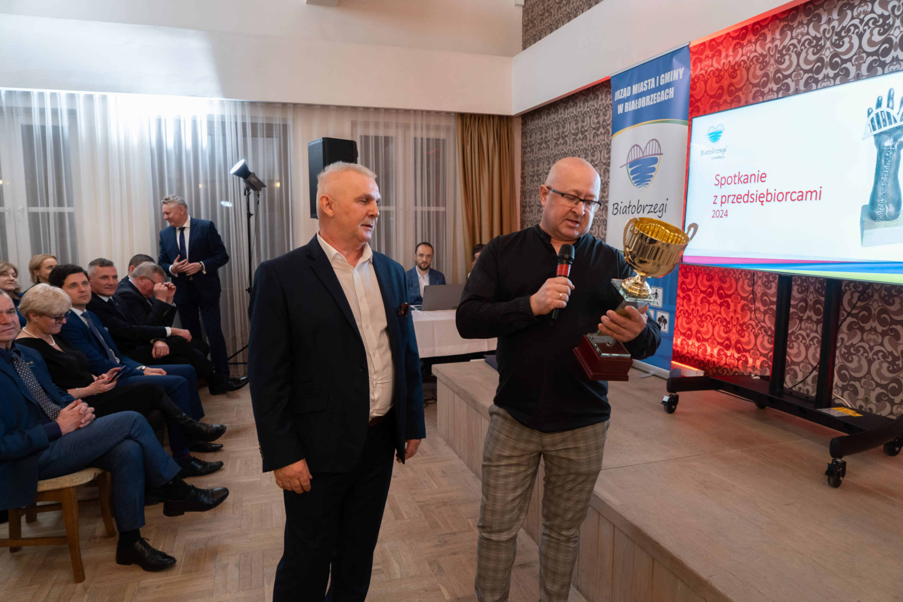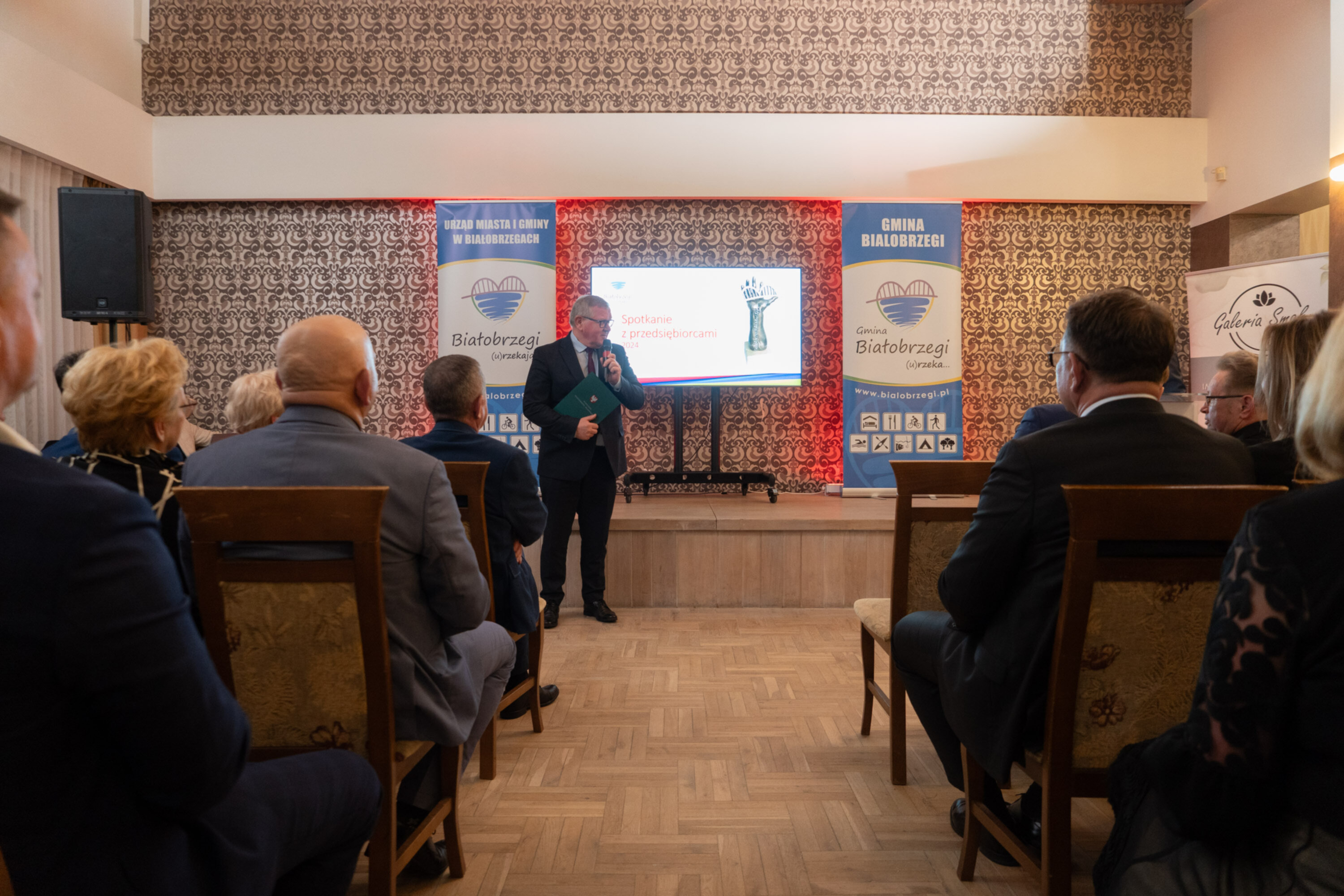 Na zaproszenie burmistrza Adama Bolka i przewodniczącego Rady Miasta i Gminy Marcina Osowskiego w spotkaniu wzięło udział ponad 200 przedsiębiorców z terenu powiatu białobrzeskiego. W spotkaniu uczestniczyli również: Posłanka na Sejm RP Joanna Kluzik-Rostkowska, wicemarszałek woj. mazowieckiego Rafał Rajkowski, radny sejmiku woj. mazowieckiego Leszek Przybytniak, prezes zarządu Mazowieckiego Regionalnego Funduszu Pożyczkowego Jakub Bilnik, dyrektor Wojewódzkiego Urzędu Pracy Andrzej Oziębło oraz ks. prof. Jacek Kucharski. Byli również samorządowcy: wicestarosta Bartłomiej Kowalczyk, burmistrz Wyśmierzyc Wojciech Sępioł i wójt gminy Promna Wojciech Nowak, a także Radni Powiatu Białobrzeskiego, Miasta i Gminy Białobrzegi oraz sołtysi, dyrektorzy gminnych i powiatowych służb, inspekcji i straży.