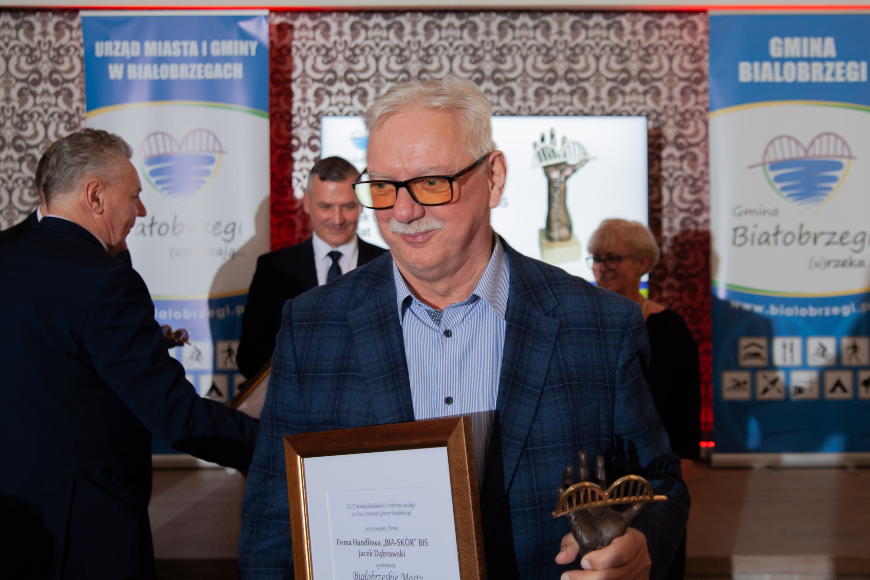 Punktem kulminacyjnym spotkania było wręczenie wyróżnień Białobrzeskie Mosty, firmom i instytucjom, obchodzącym okrągły jubileusz, co najmniej 20 lat działalności w gminie Białobrzegi. Wyróżnienia odebrali: