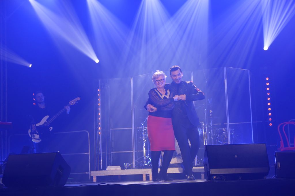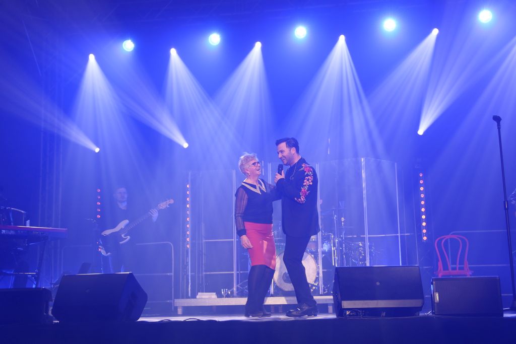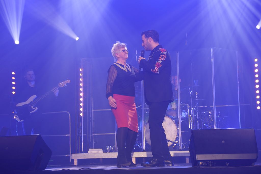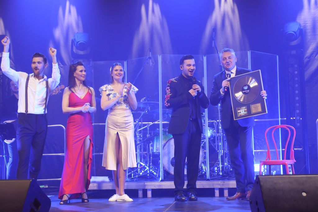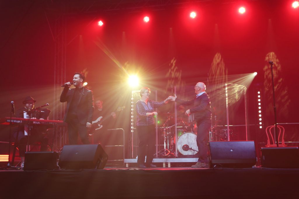 Zastępca burmistrza Mieczysław Danielewicz oraz dyrektor BCK Białe Brzegi Mateusz Rzeźnicki wręczyli artyście Złotą Białobrzeską Płytę w podziękowaniu za roztańczony występ.