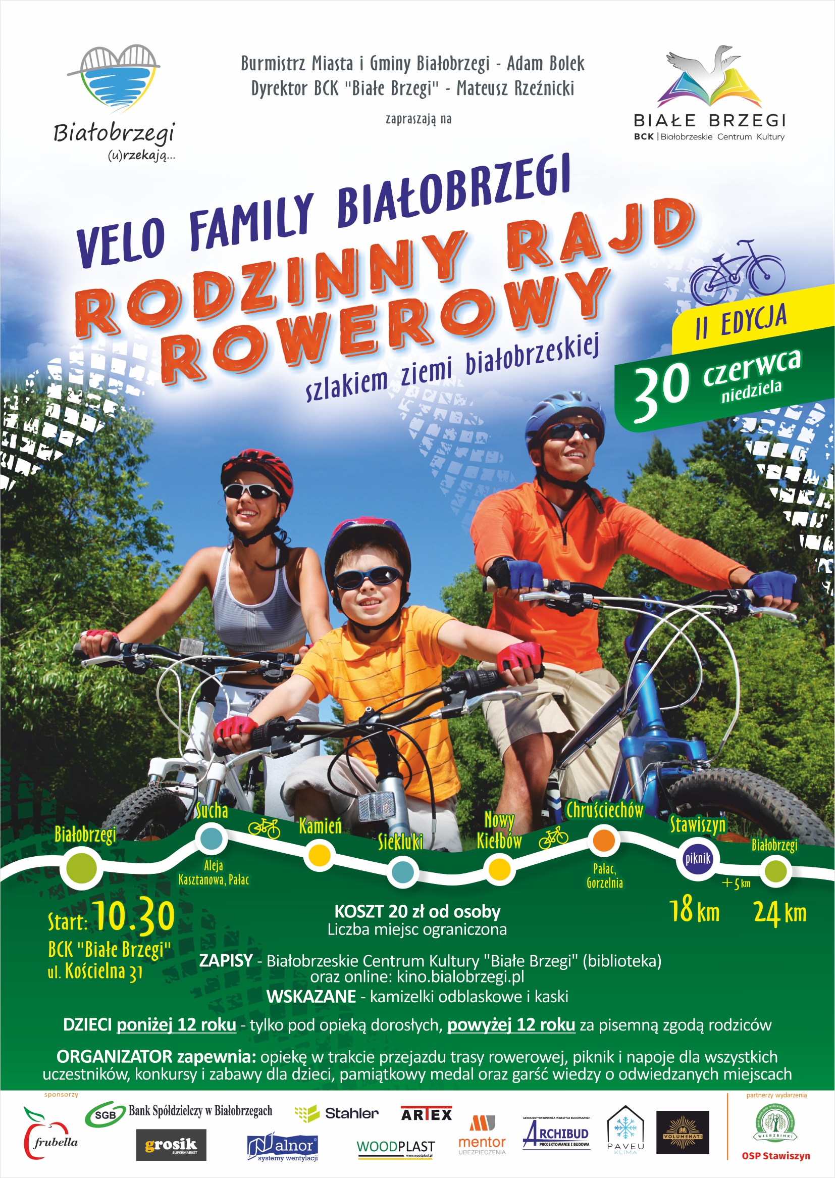 Velo Family to rajd rowerowy dla całych rodzin. W tym roku będzie to druga edycja tego wydarzenia. Odbędzie się ono w niedzielę 30 czerwca od godziny 10.30. Start zaplanowano sprzed budynku Białobrzeskiego Centrum Kultury, które jest głównym organizatorem wydarzenia.