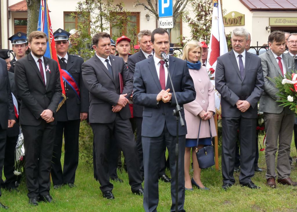 Po zakończonej mszy świętej wszystkie przybyłe delegacje złożyły wiązanki kwiatów pod pomnikiem na placu kościelnym w hołdzie żołnierzom poległym w obronie Ojczyzny.