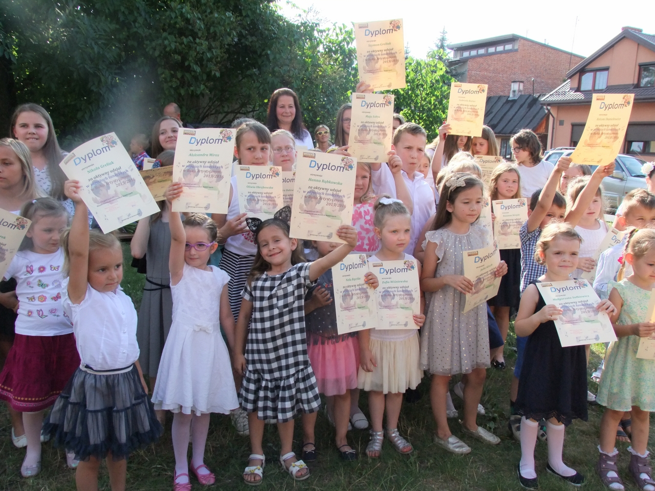 Wszystkich zgromadzonych gości przywitała p. Anna Tchórzewska – dyrektor MGOK, która podziękowała zarówno wszystkim wychowankom naszej placówki jak i instruktorom za aktywność i współpracę w mijającym roku artystycznym. Instruktorzy poszczególnych grup artystycznych (tanecznej, wokalnej, instrumentalnej, ceramicznej, teatralnej, plastycznej) wręczyli wychowankom pamiątkowe dyplomy oraz częstowali słodkościami. Przed zgromadzoną publicznością zaprezentowały się dzieci z zajęć tanecznych. Nie zabrakło smacznych kiełbasek z grilla.