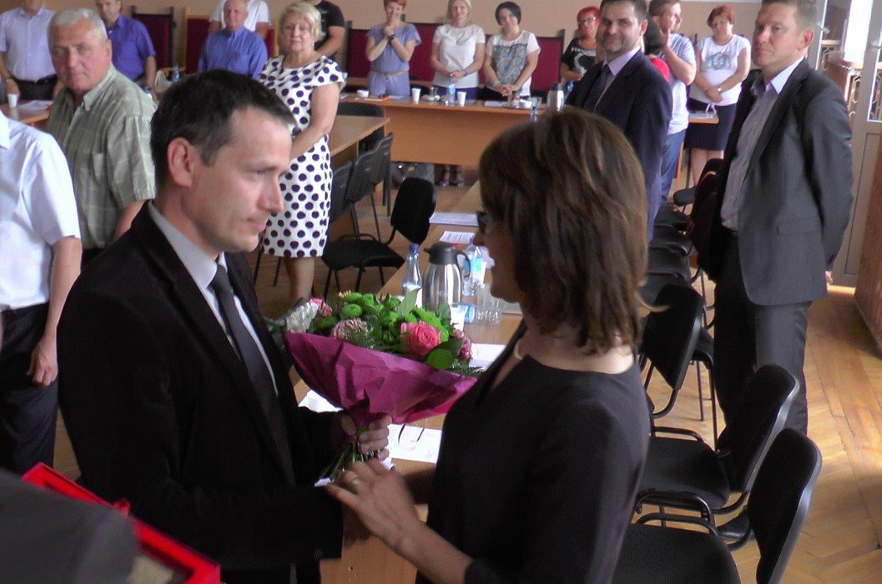 Burmistrz oraz Przewodniczący Rady podziękowali Pani Annie Fatek za 8 lat pracy na rzecz samorządu podkreślając profesjonalizm, merytoryczność, otwartość na innych ludzi oraz pogodę ducha.