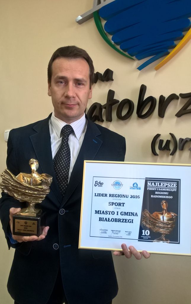 W dniu 23 września br. podczas uroczystej Gali w Radomiu Burmistrz Adam Bolek odebrał nagrodę LIDER REGIONU 2016 dla Gminy Białobrzegi w kategorii SPORT przyznawanej corocznie przez redakcję gazety „Echo Dnia”.