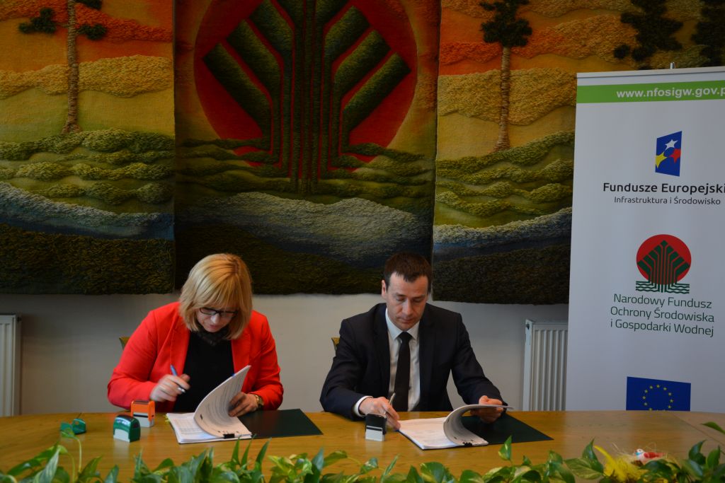 W siedzibie Narodowego Funduszu Ochrony Środowiska i Gospodarki Wodnej burmistrz Adam Bolek i skarbnik gminy Iwona Czwarno-Olczykowska podpisali umowę na dofinansowanie zadania pn. Uporządkowanie gospodarki wodno-ściekowej w gminie Białobrzegi - etap II.