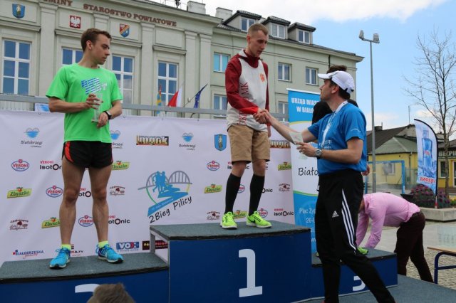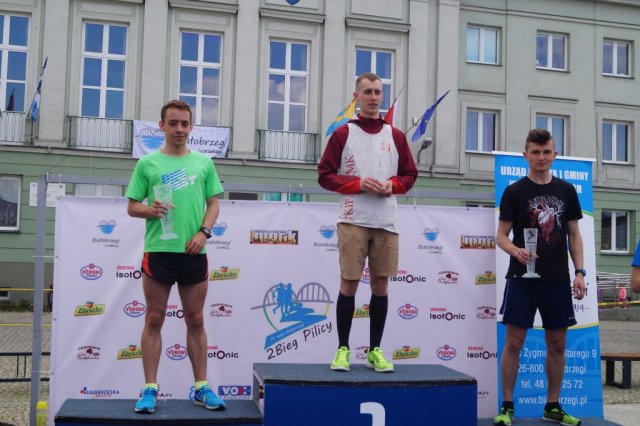 Po nich wystartował bieg na 3 km i marsz nordic walking. O godz. 11 na 10 km trasę ruszyło ponad 230 biegaczy (wyniki biegu na www.datasport.pl). Zwycięscy biegu otrzymali puchary i upominki rzeczowe od organizatorów. Zwycięzcą 2 Biegu Pilicy z czasem 34,49 został Łukasz Więckowski.
