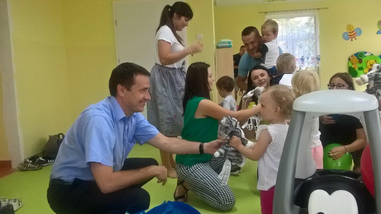 W pierwszym dniu dzieci pod opieką rodziców adaptowały się w nowym otoczeniu. Odwiedzili je również burmistrz Adam Bolek i sekretarz gminy Sławomir Bielecki, którzy w prezencie „na dobry początek” przekazali dzieciom maskotki.
