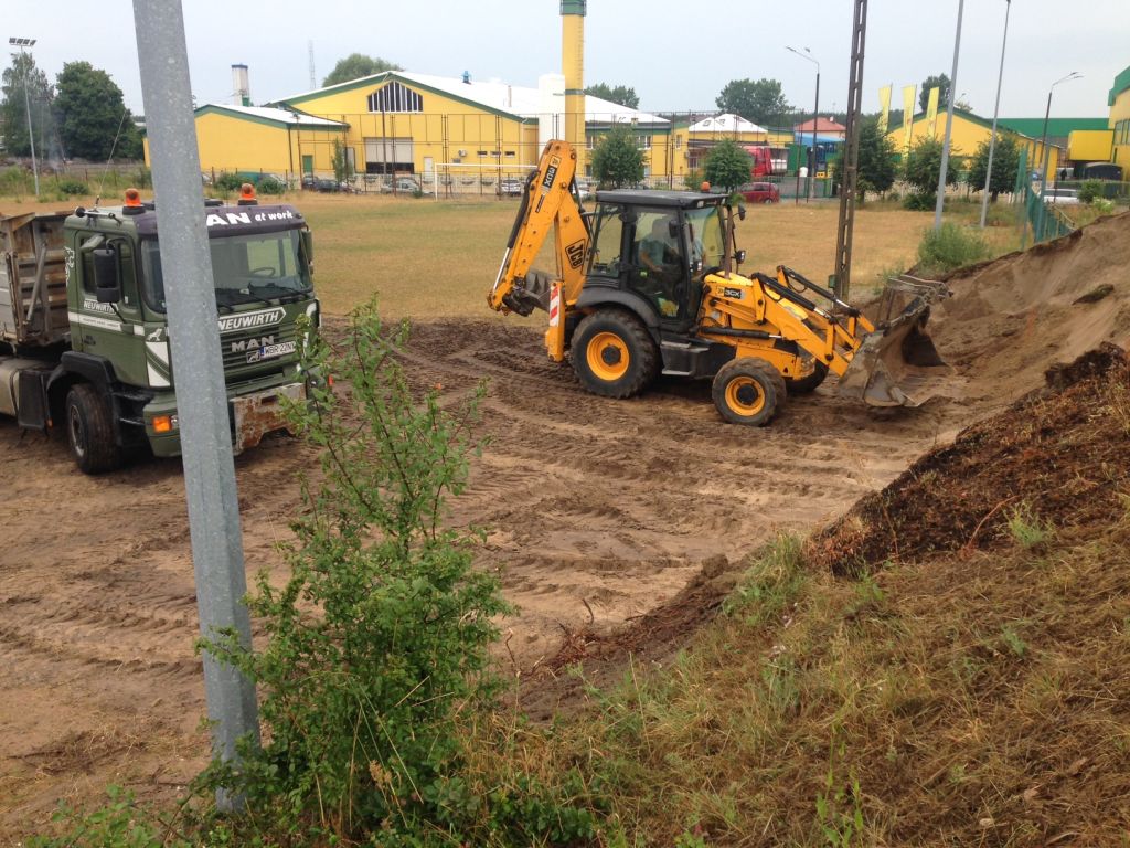 Ruszyły pierwsze prace na stadionie, teren budowy został przekazany wykonawcy firmie Arbud. W pierwszym etapie zniknie stara trybuna. Zdemontowano krzesełka, płyty chodnikowe oraz stalowe elementy trybuny. Rozpoczęły się również prace ziemne, których celem jest wywiezienie ziemnego nasypu. Oświetlenie bocznego boiska zostanie zdemontowane i przeniesione na boisko do Suchej.