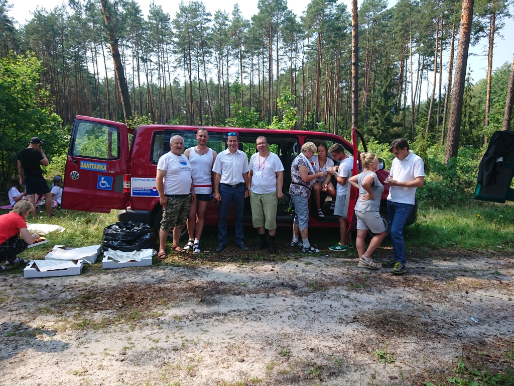 Podczas krótkiego spotkania na trasie marszu, burmistrz i wicestarosta przekazali na ręce ks. Jacka Wierzbickiego dla wszystkich naszych pielgrzymów koszulki z logo gminy oraz drobne słodkości.