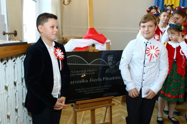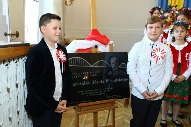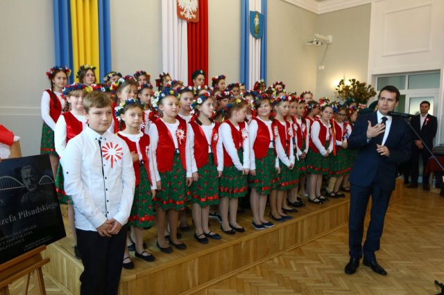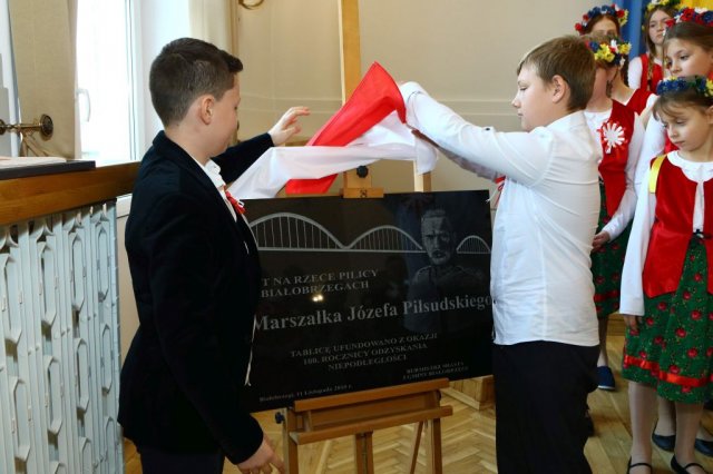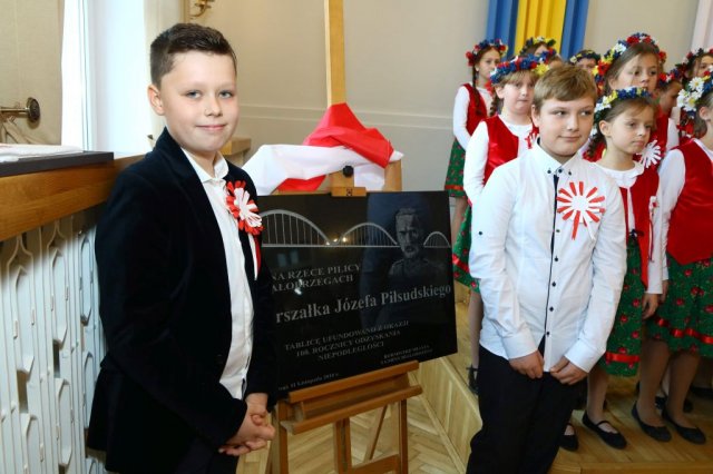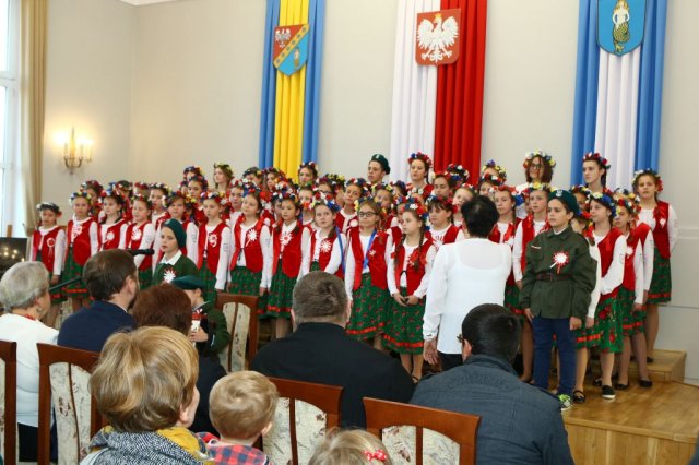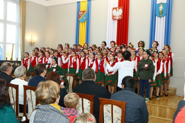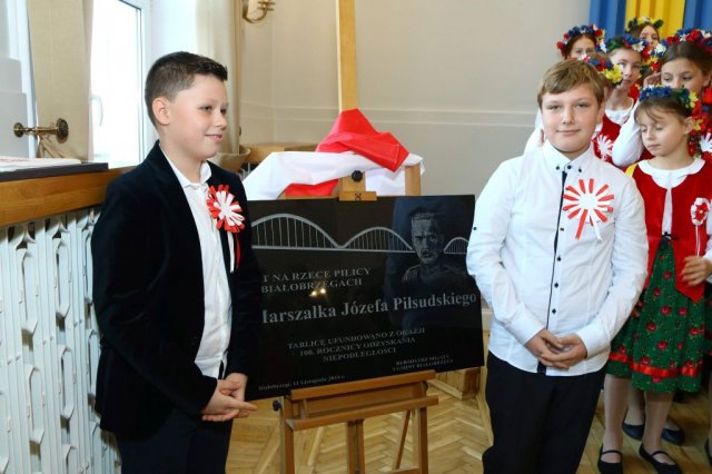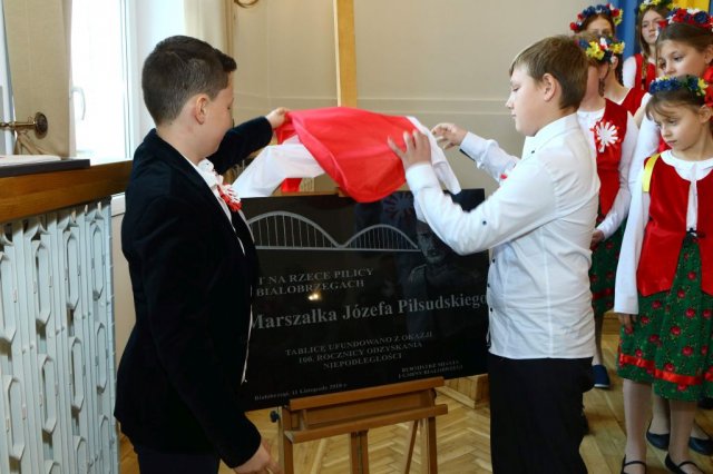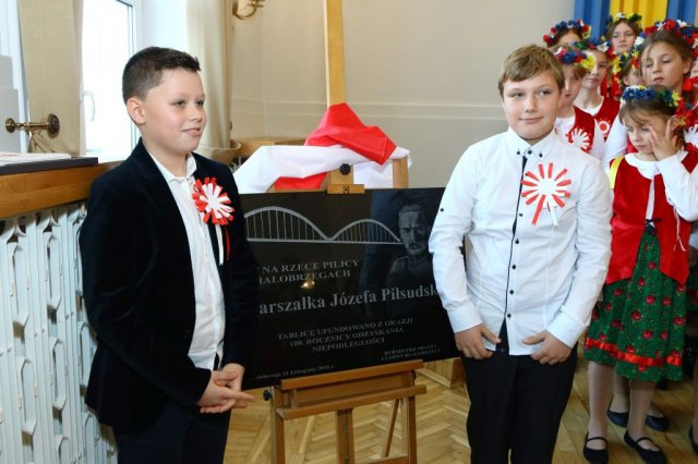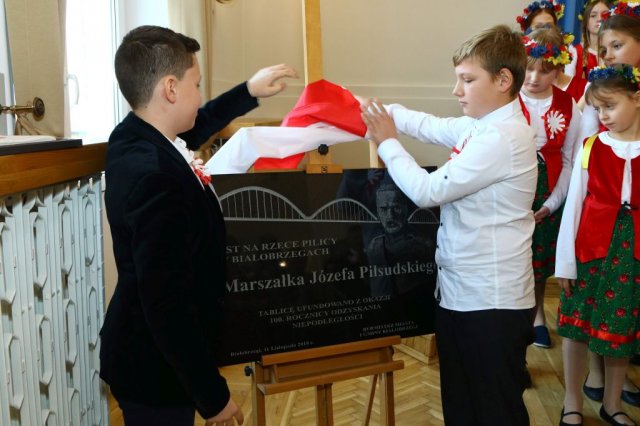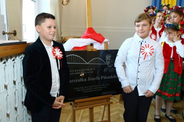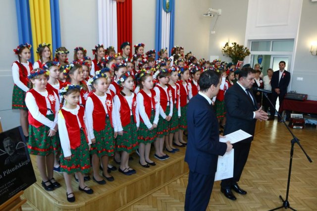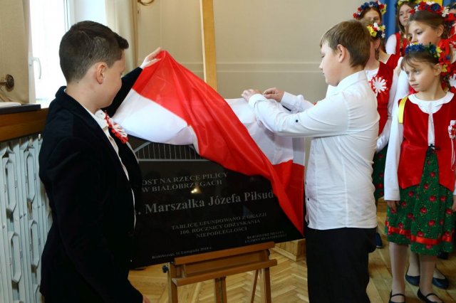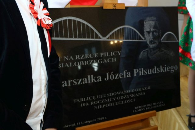 Następnie w sali konferencyjnej Urzędu rozpoczął się koncert chóru Echo ze Lwowa pod dyrekcją Edwarda Kuca oraz Chóru Jedynka KEN ze szkoły podstawowej nr 1 w Białobrzegach pod dyrekcją Agaty Kowalczyk i Marty Wójcik-Marzec. Podczas koncertu chórów nastąpiło symboliczne odsłonięcie tablicy nadającej imię Marszałka Józefa Piłsudskiego Białobrzeskiemu Mostowi nad Pilicą (wykonano uchwałę Rady Miasta i Gminy z 30 września 2013 roku). Odsłonięcia tablicy dokonali Bartosz Chochlewicz i Antoni Fołtyn, uczniowie białobrzeskich szkół urodzeni w dniu 11 listopada.