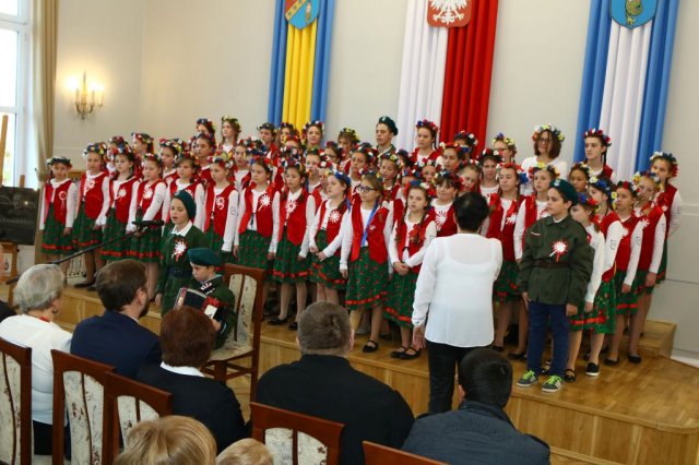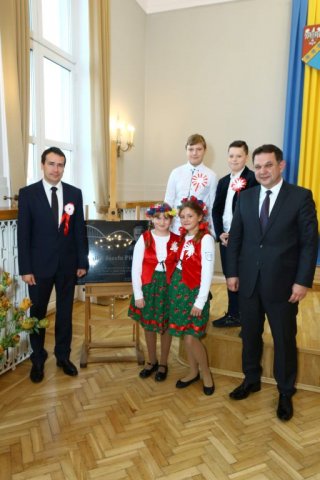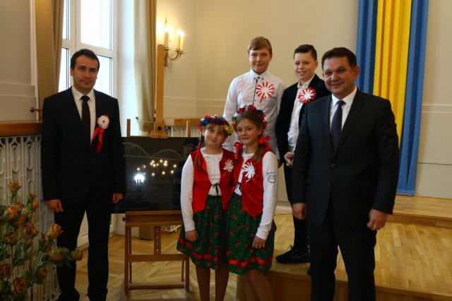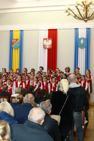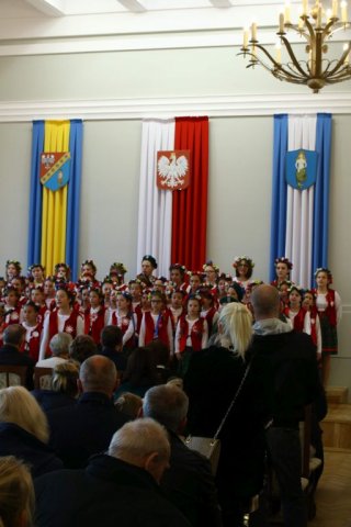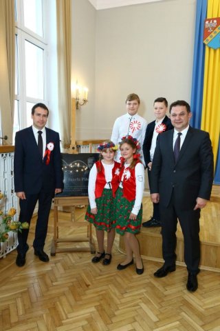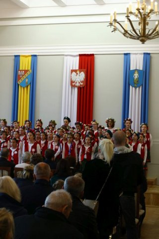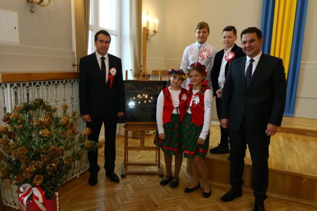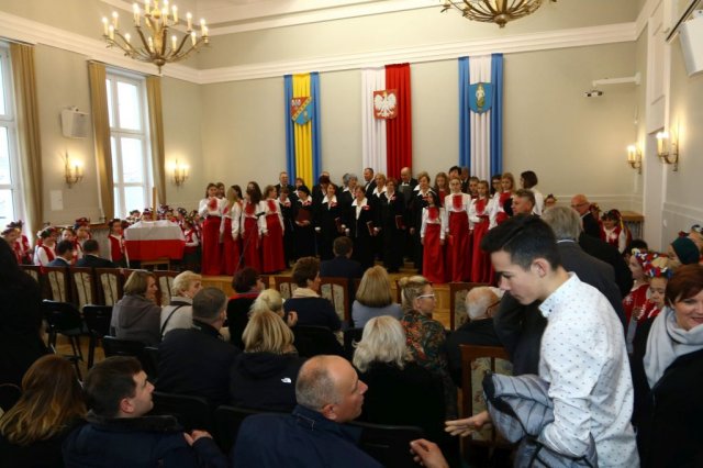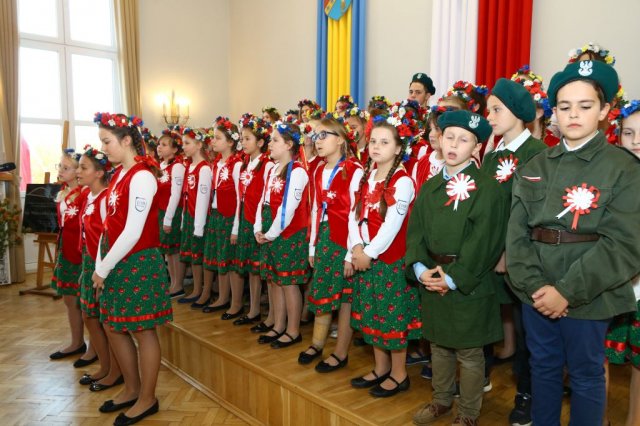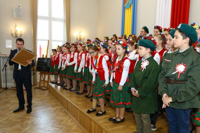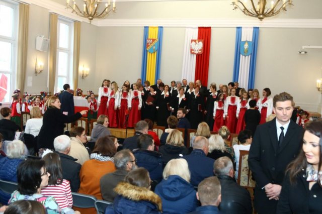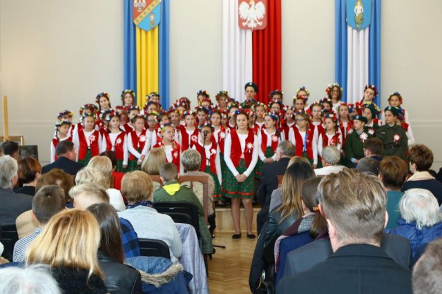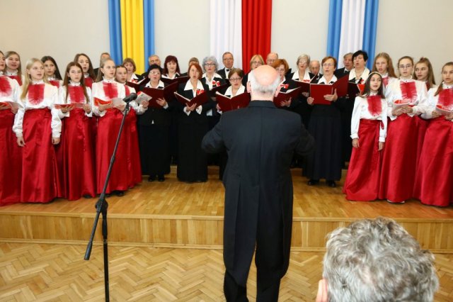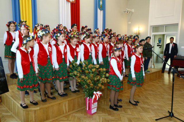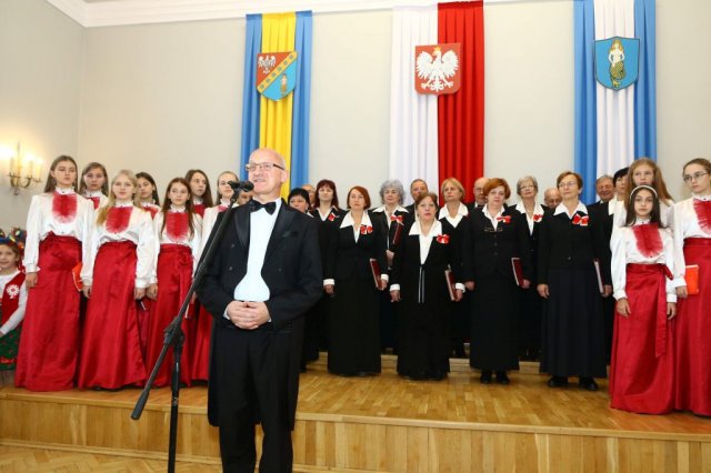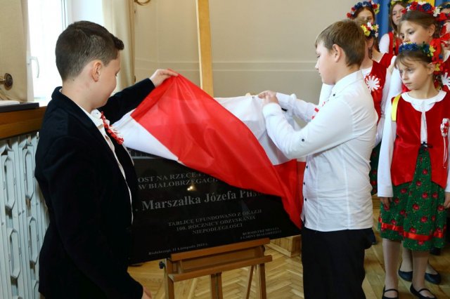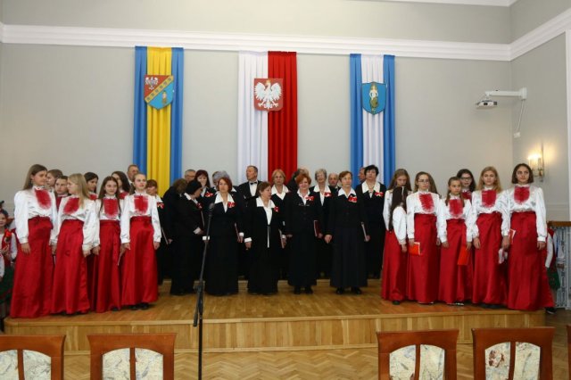 Następnie w sali konferencyjnej Urzędu rozpoczął się koncert chóru Echo ze Lwowa pod dyrekcją Edwarda Kuca oraz Chóru Jedynka KEN ze szkoły podstawowej nr 1 w Białobrzegach pod dyrekcją Agaty Kowalczyk i Marty Wójcik-Marzec. Podczas koncertu chórów nastąpiło symboliczne odsłonięcie tablicy nadającej imię Marszałka Józefa Piłsudskiego Białobrzeskiemu Mostowi nad Pilicą (wykonano uchwałę Rady Miasta i Gminy z 30 września 2013 roku). Odsłonięcia tablicy dokonali Bartosz Chochlewicz i Antoni Fołtyn, uczniowie białobrzeskich szkół urodzeni w dniu 11 listopada.