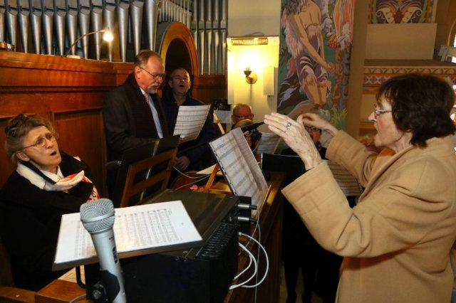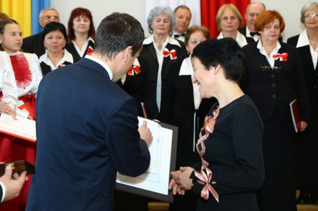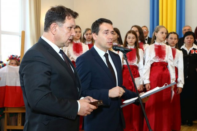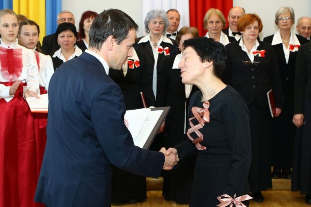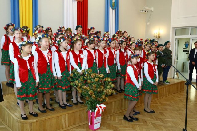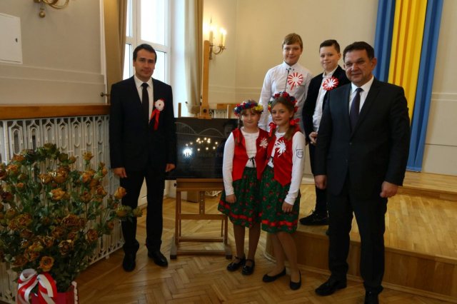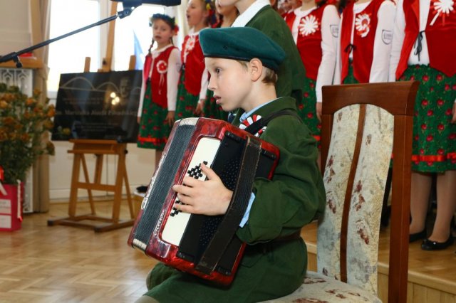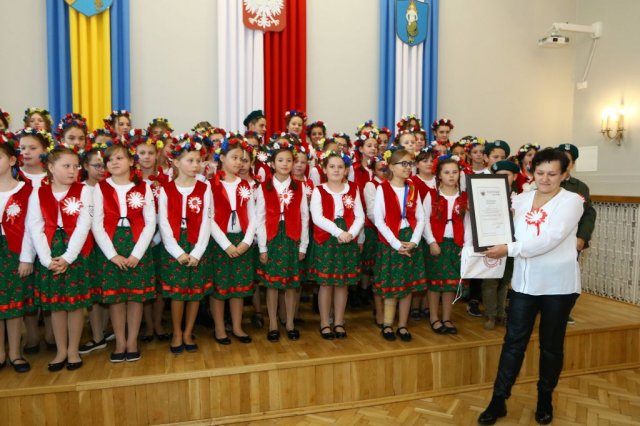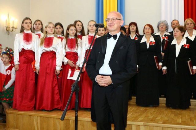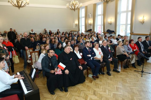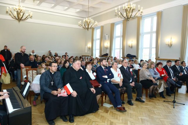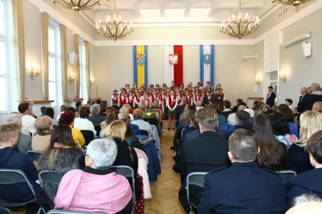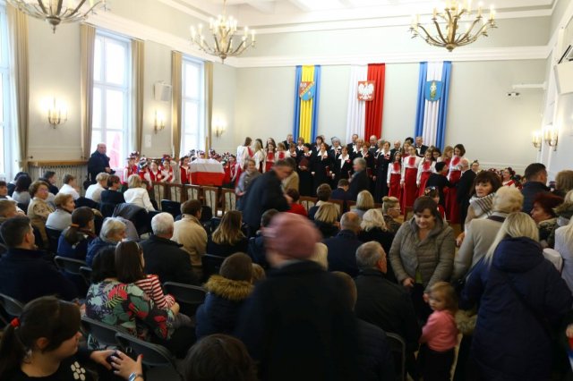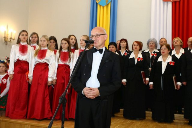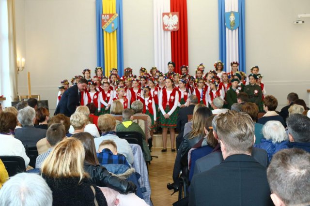 Następnie w sali konferencyjnej Urzędu rozpoczął się koncert chóru Echo ze Lwowa pod dyrekcją Edwarda Kuca oraz Chóru Jedynka KEN ze szkoły podstawowej nr 1 w Białobrzegach pod dyrekcją Agaty Kowalczyk i Marty Wójcik-Marzec. Podczas koncertu chórów nastąpiło symboliczne odsłonięcie tablicy nadającej imię Marszałka Józefa Piłsudskiego Białobrzeskiemu Mostowi nad Pilicą (wykonano uchwałę Rady Miasta i Gminy z 30 września 2013 roku). Odsłonięcia tablicy dokonali Bartosz Chochlewicz i Antoni Fołtyn, uczniowie białobrzeskich szkół urodzeni w dniu 11 listopada.