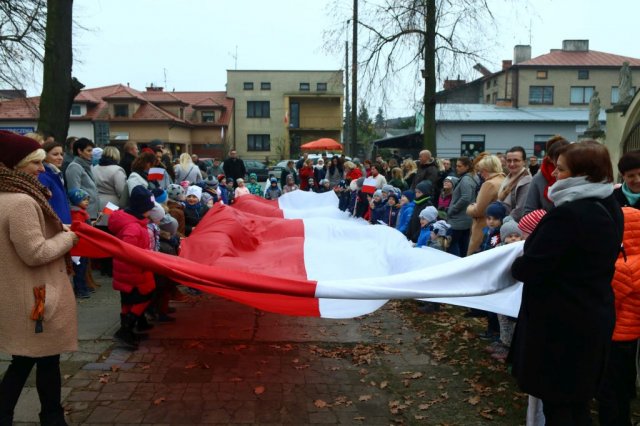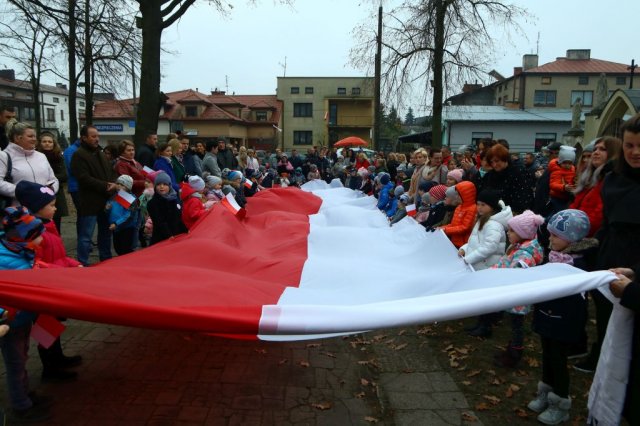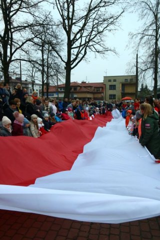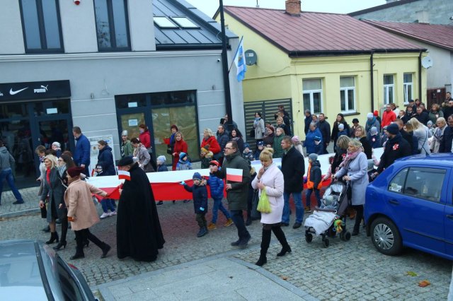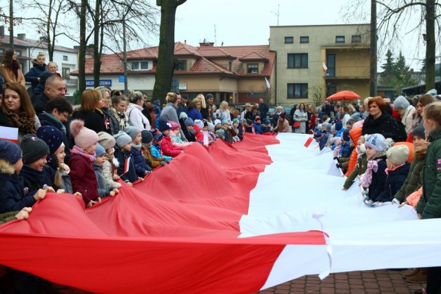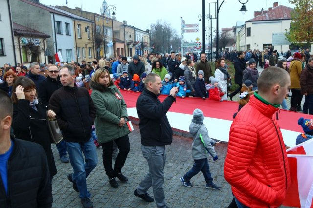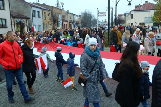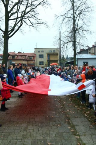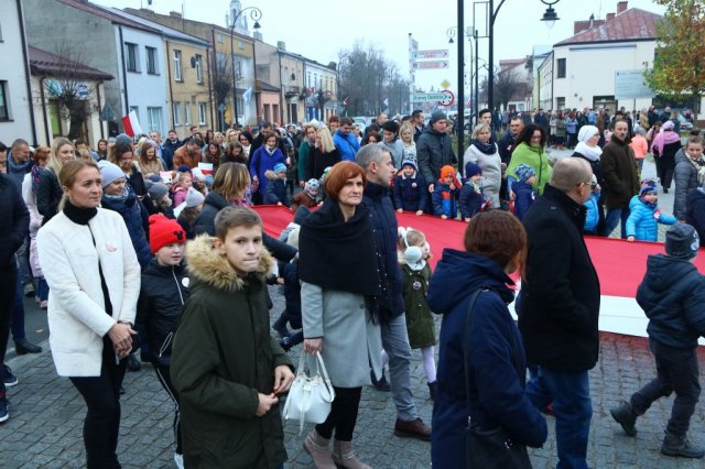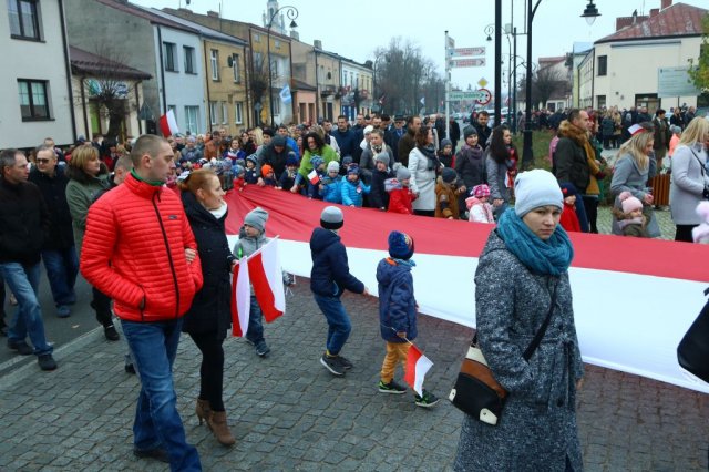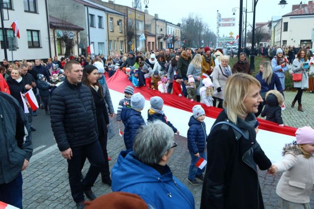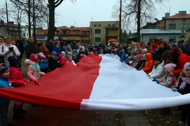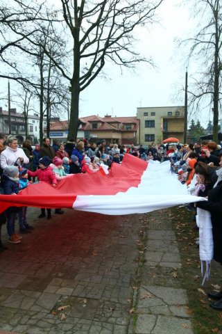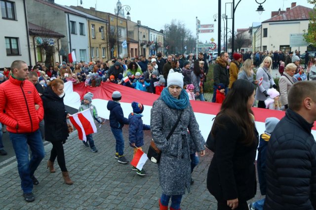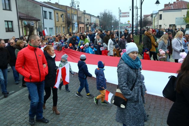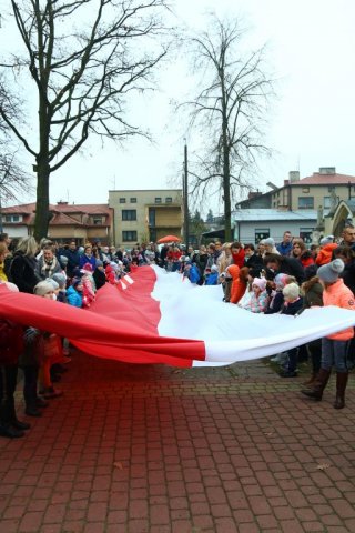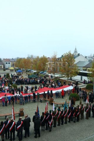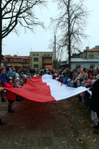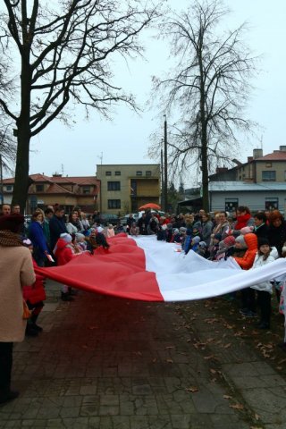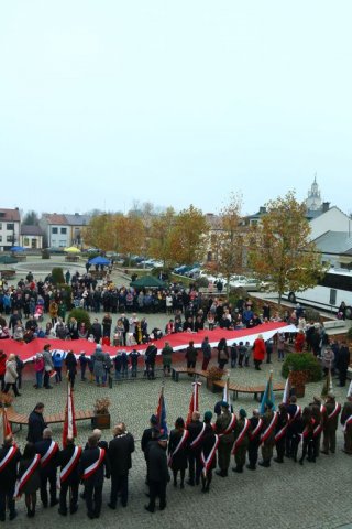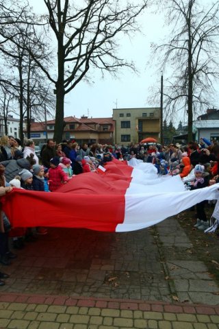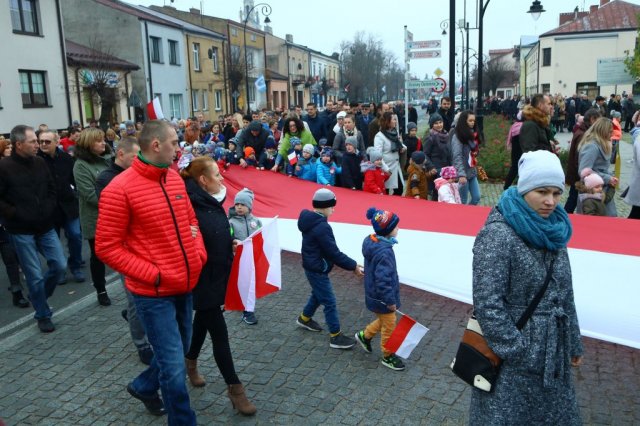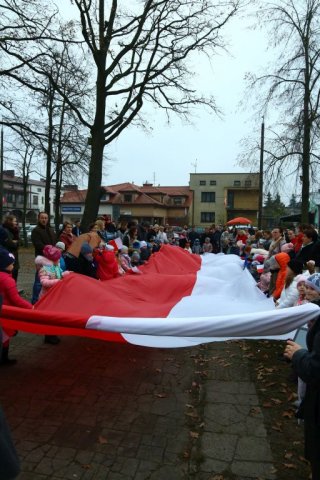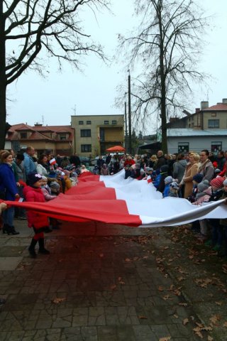 Kulminacyjnym punktem był przemarsz uczestników obchodów Narodowego Święta do białobrzeskiego Ratusza. Wśród uczestników marszu były dzieci z naszych przedszkoli, niosące 30 m flagę narodową, która po uroczystości zawisła na budynku Urzędu Miasta i Gminy.