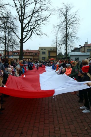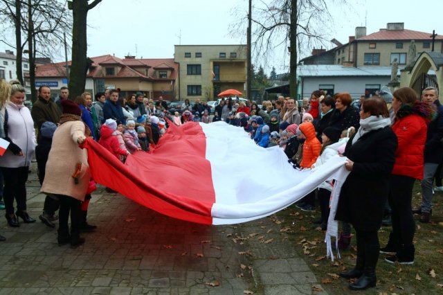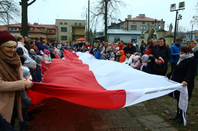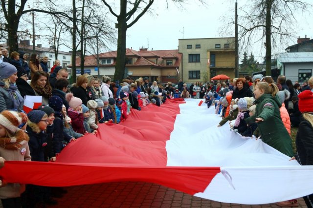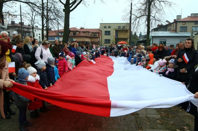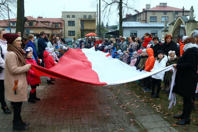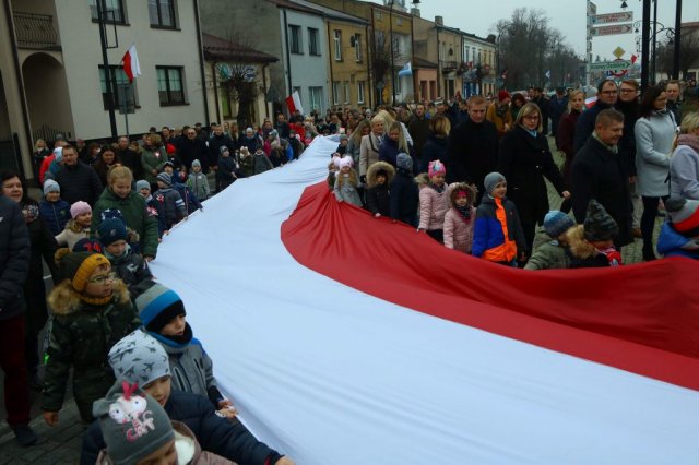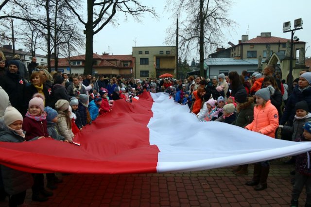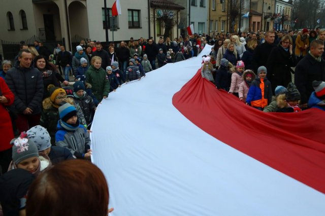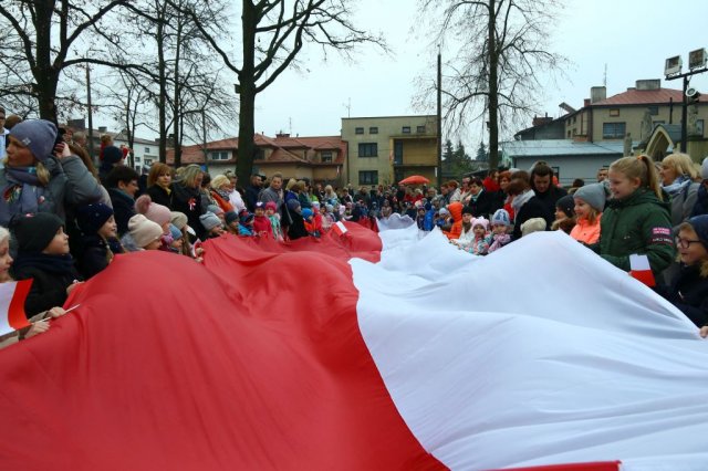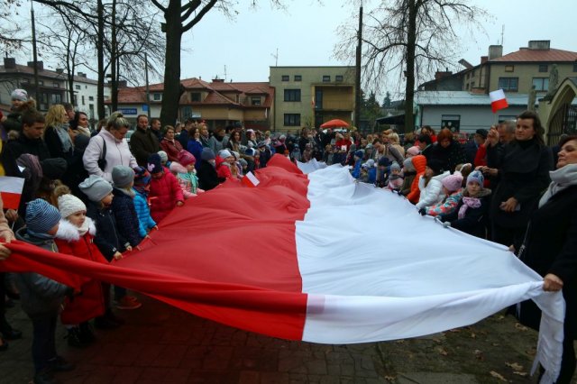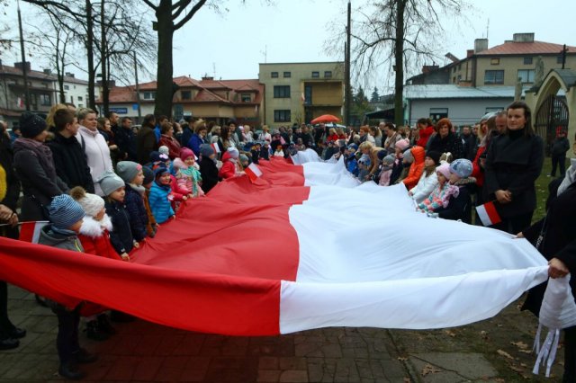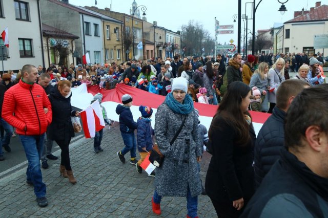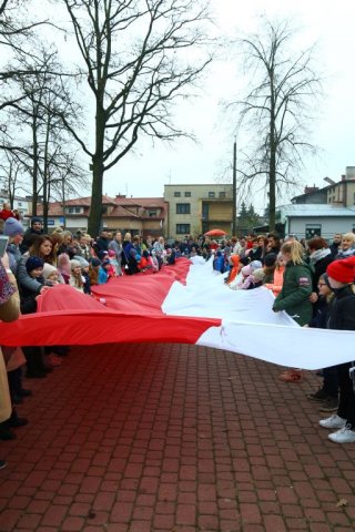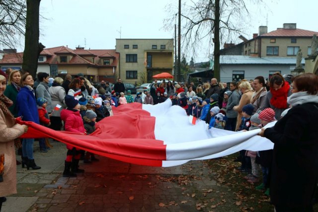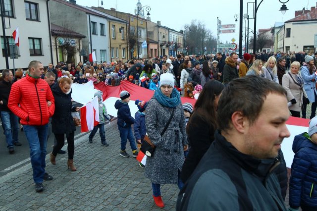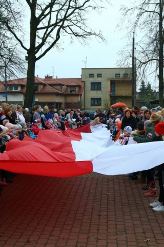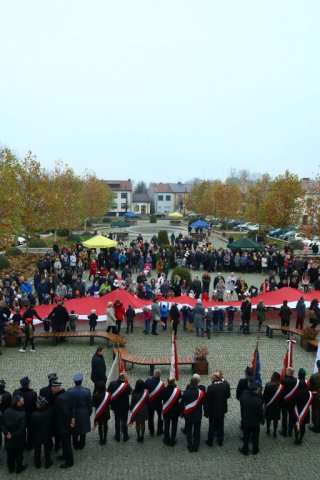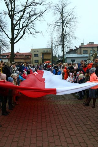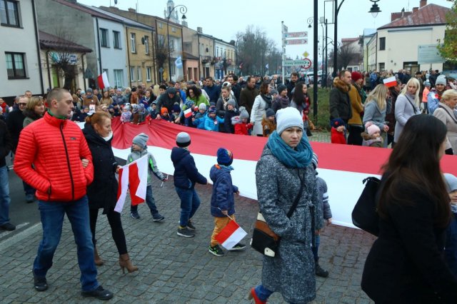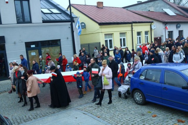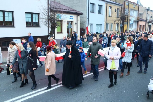 Kulminacyjnym punktem był przemarsz uczestników obchodów Narodowego Święta do białobrzeskiego Ratusza. Wśród uczestników marszu były dzieci z naszych przedszkoli, niosące 30 m flagę narodową, która po uroczystości zawisła na budynku Urzędu Miasta i Gminy.