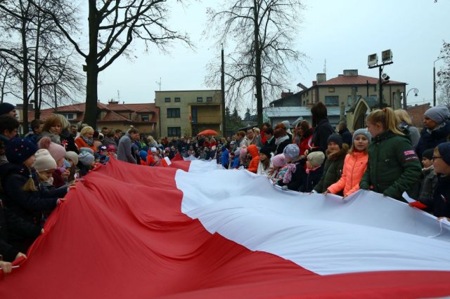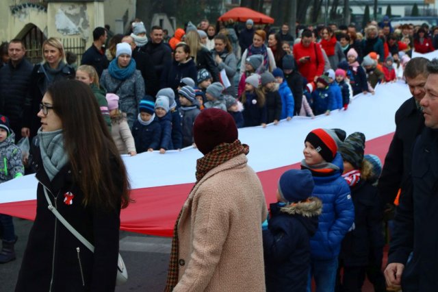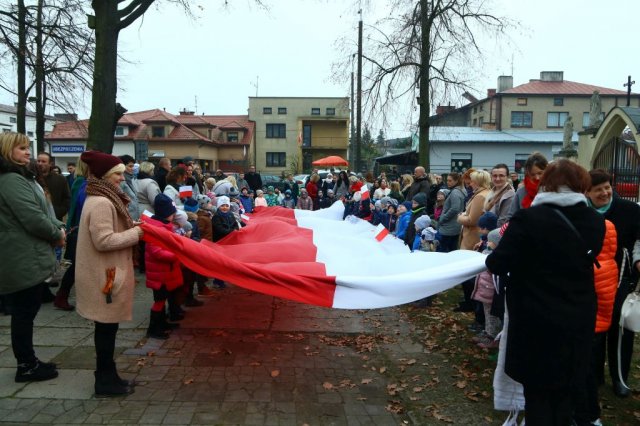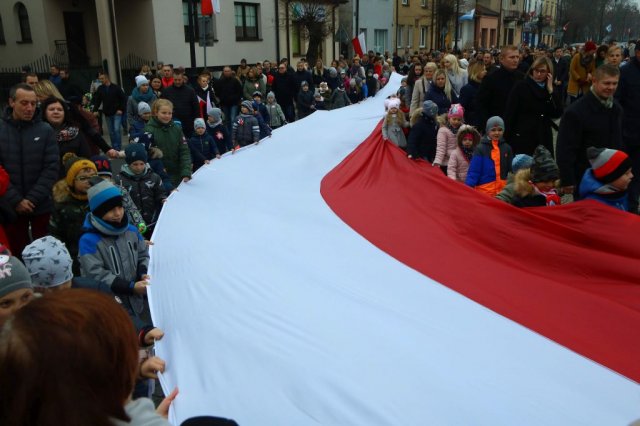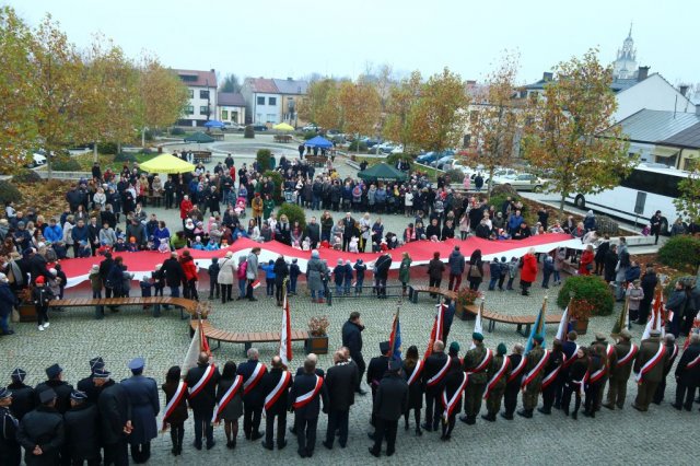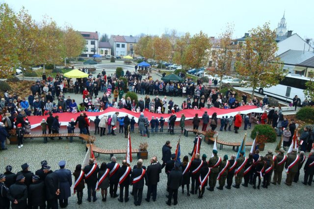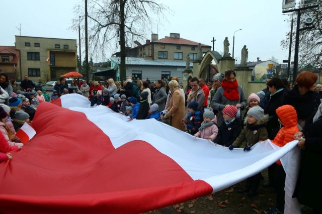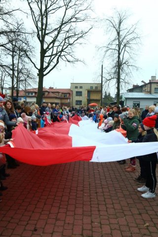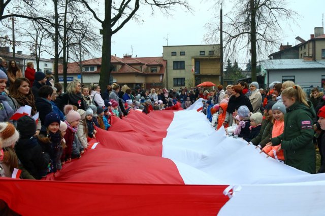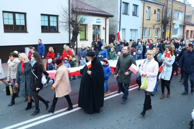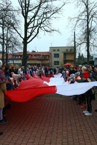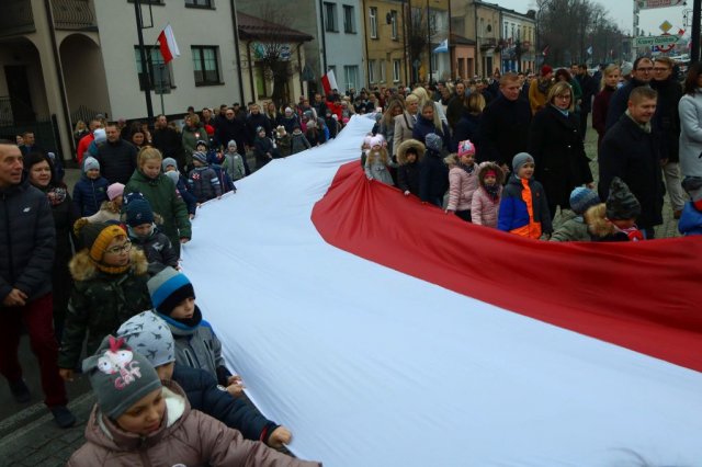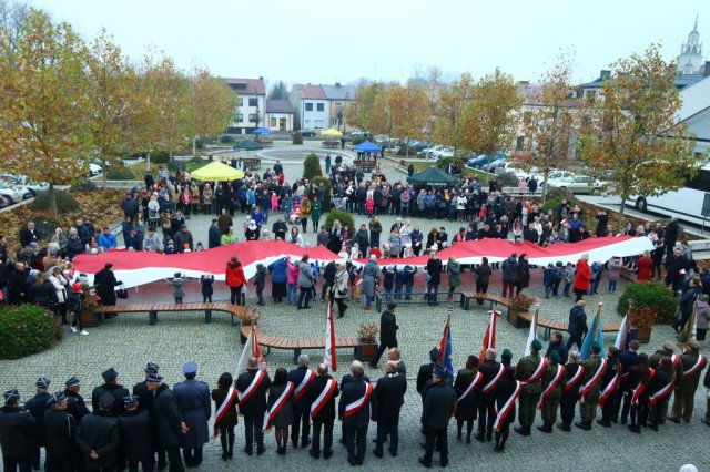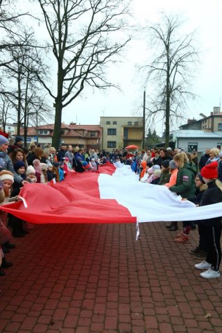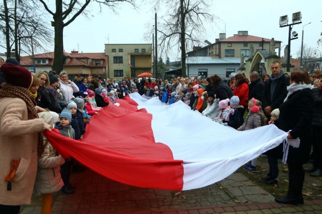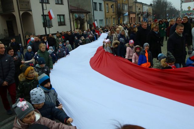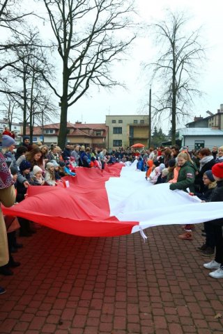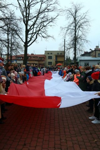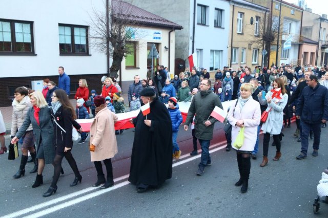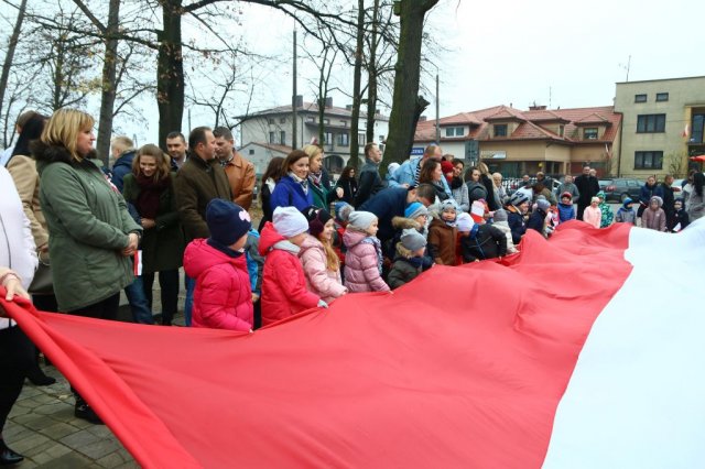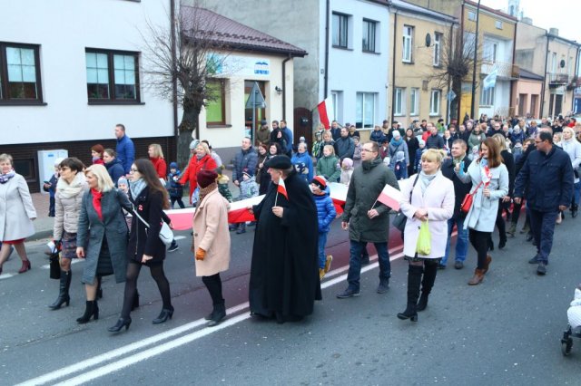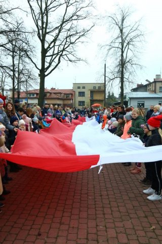 Kulminacyjnym punktem był przemarsz uczestników obchodów Narodowego Święta do białobrzeskiego Ratusza. Wśród uczestników marszu były dzieci z naszych przedszkoli, niosące 30 m flagę narodową, która po uroczystości zawisła na budynku Urzędu Miasta i Gminy.