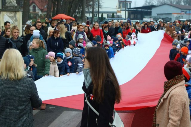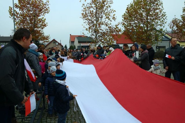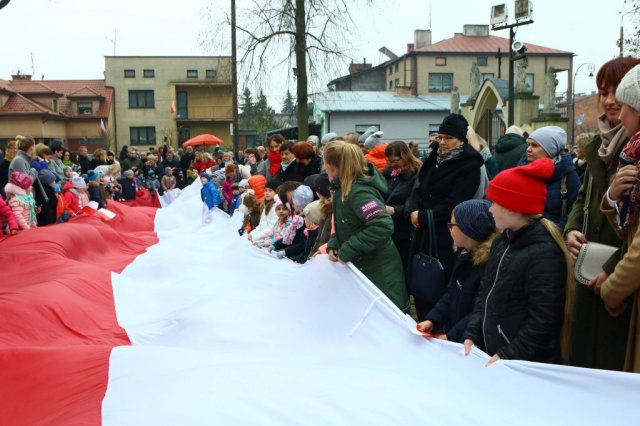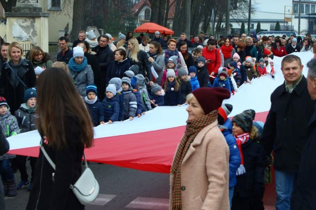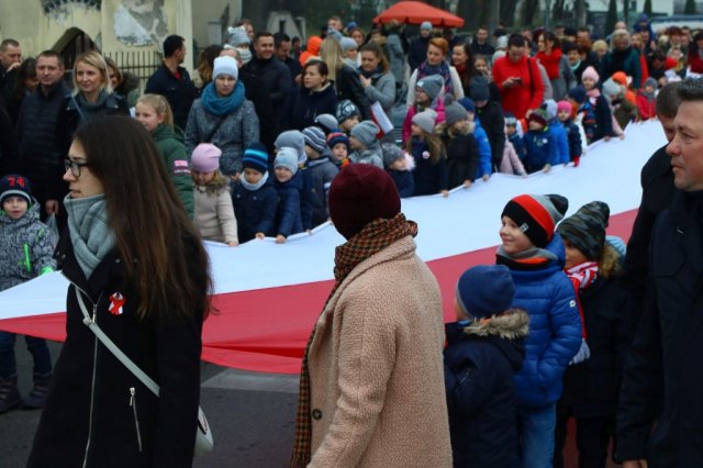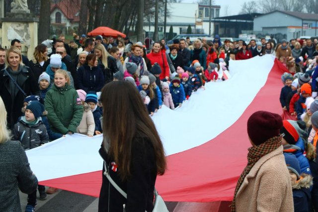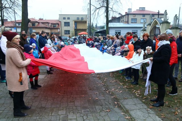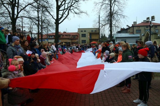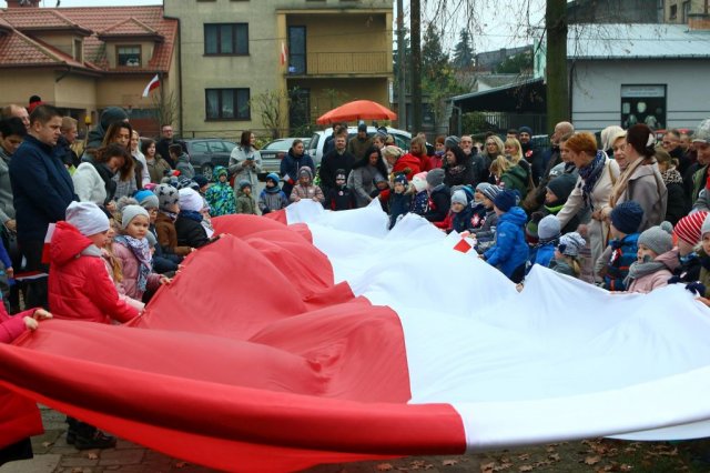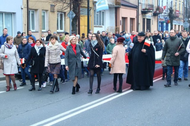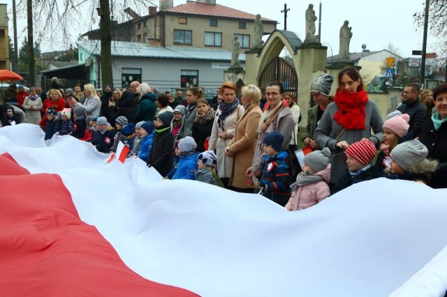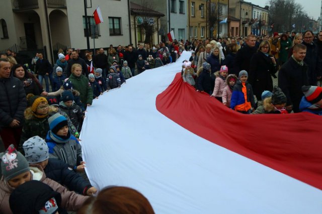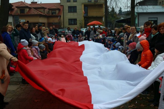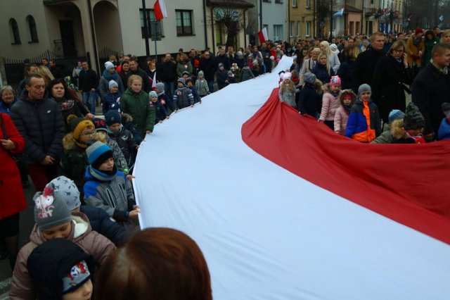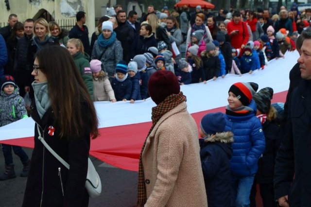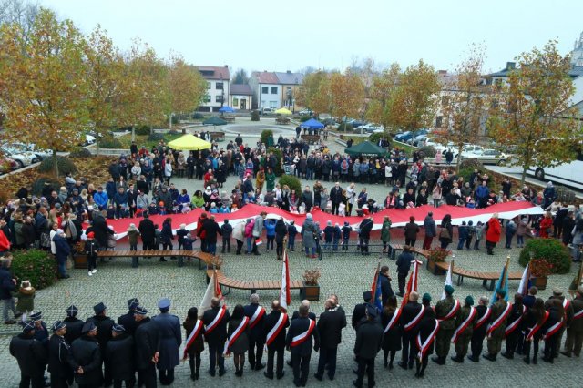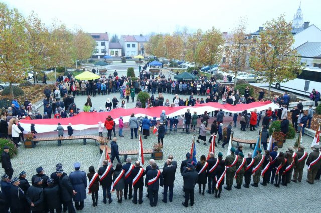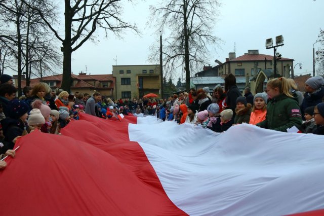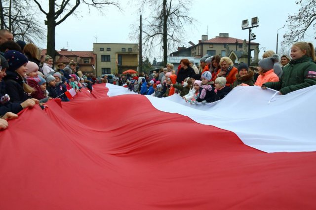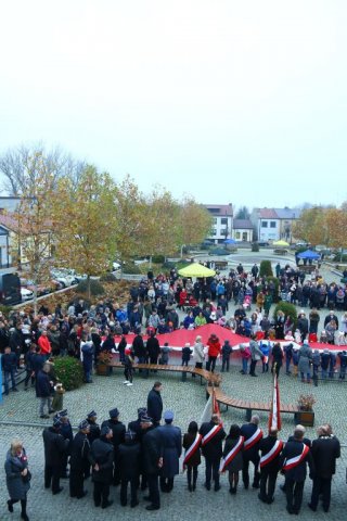 Kulminacyjnym punktem był przemarsz uczestników obchodów Narodowego Święta do białobrzeskiego Ratusza. Wśród uczestników marszu były dzieci z naszych przedszkoli, niosące 30 m flagę narodową, która po uroczystości zawisła na budynku Urzędu Miasta i Gminy.