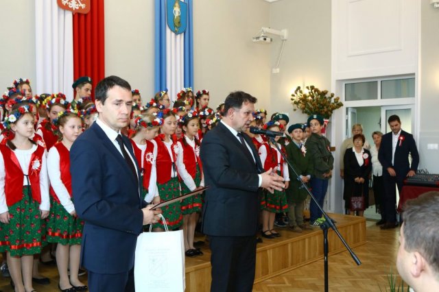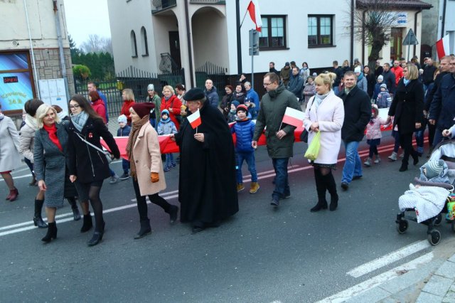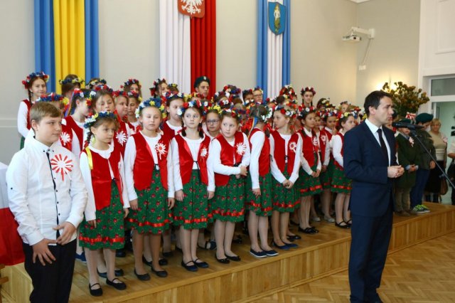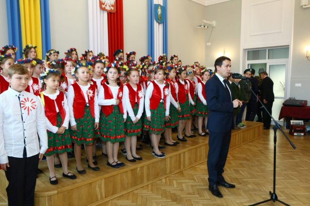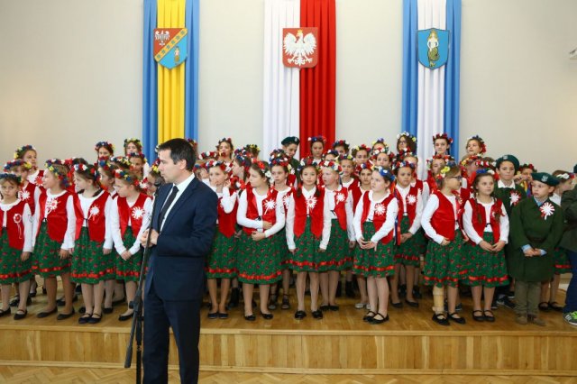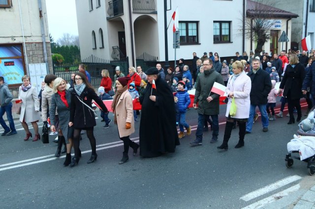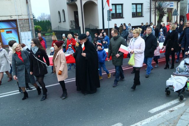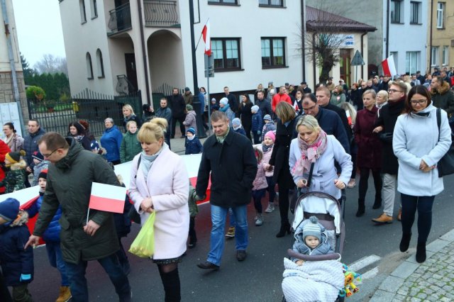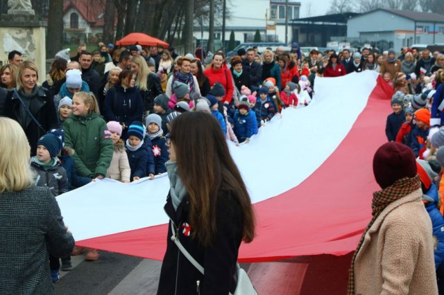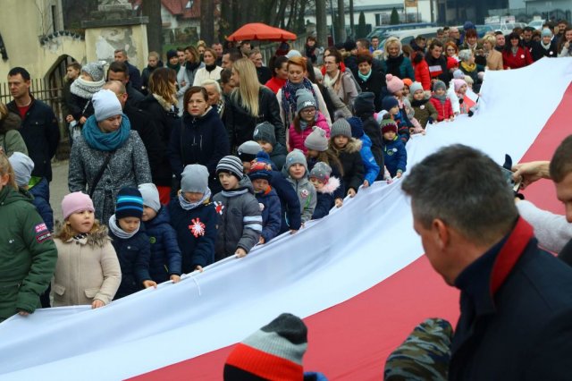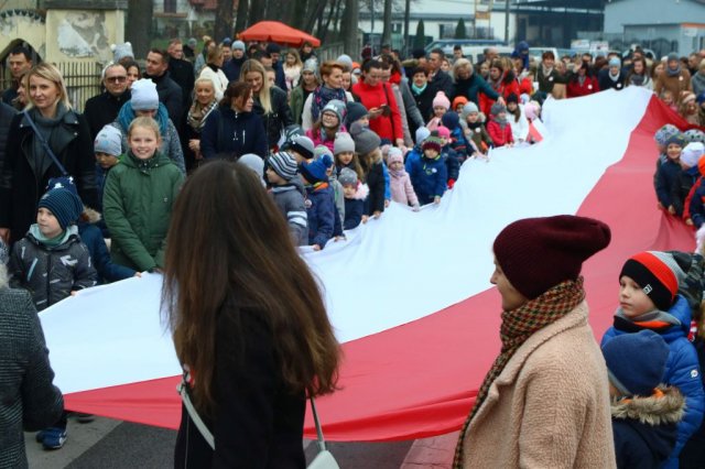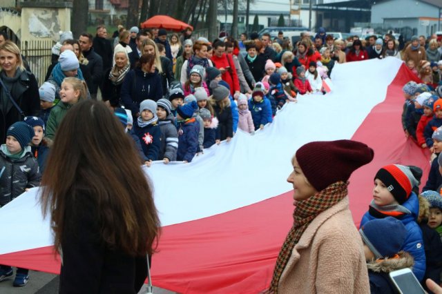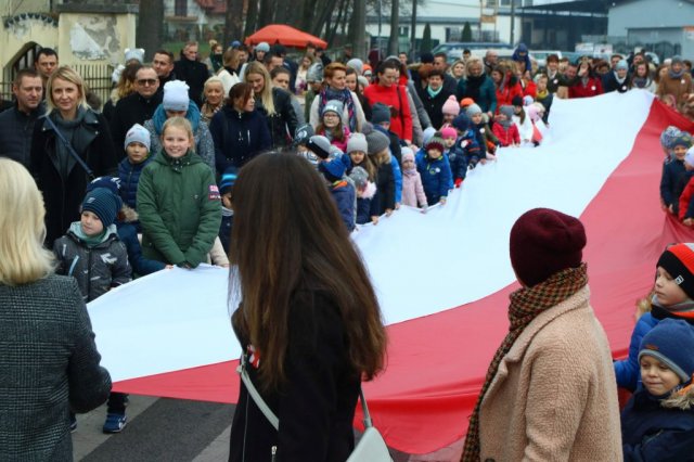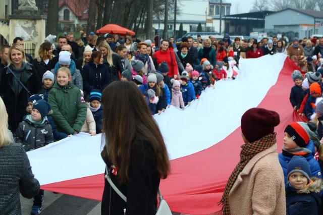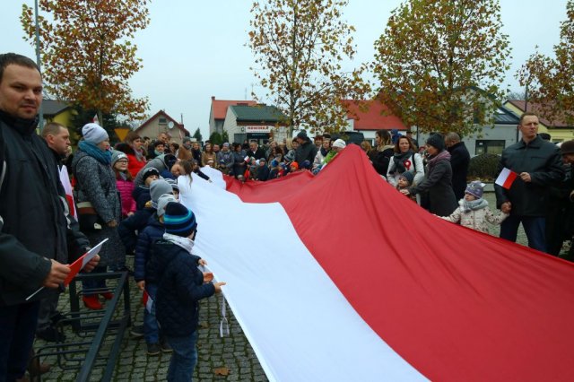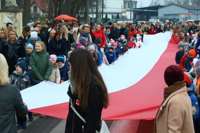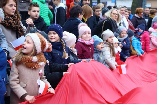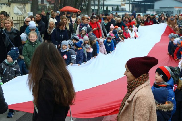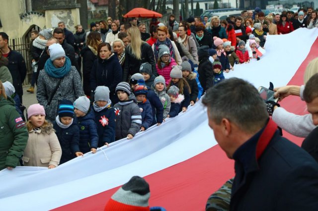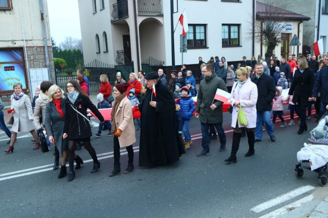 Kulminacyjnym punktem był przemarsz uczestników obchodów Narodowego Święta do białobrzeskiego Ratusza. Wśród uczestników marszu były dzieci z naszych przedszkoli, niosące 30 m flagę narodową, która po uroczystości zawisła na budynku Urzędu Miasta i Gminy.