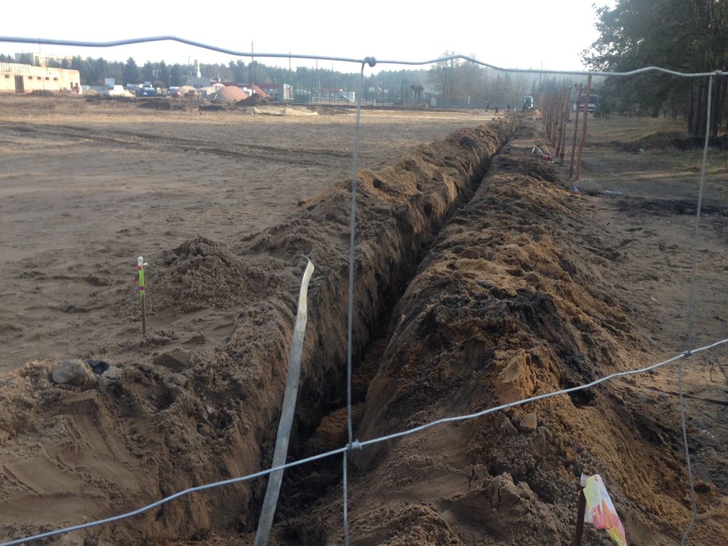 Za bramkami powstaną piłko chwyty, a z boku boiska pojawią boksy dla zawodników rezerwowych. Trwa usuwanie warstwy humusu i przygotowanie terenu pod warstwy podbudowy.