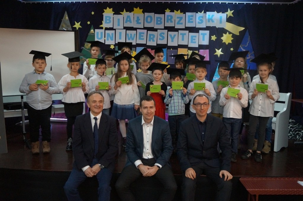 Podczas trzeciego spotkania, 14 grudnia 2019 roku, nasi młodzi studenci w obecności Burmistrza Miasta i Gminy Białobrzegi – Adama Bolka, Dyrektora Miejsko-Gminnego Ośrodka Kultury w Białobrzegach – Andrzeja Łukomskiego, Wykładowcy – Krzysztofa Figarskiego oraz rodziców złożyli uroczyste ślubowanie, odebrali indeksy i tym samym stali się prawomocnymi studentami Białobrzeskiego Uniwersytetu Dziecięcego.