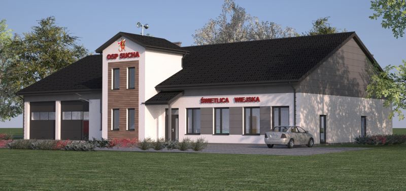 Budynek świetlicy powstanie na działce przy ulicy Szlacheckiej, na której działała stara szkoła. Pełnił on będzie dwie funkcje: świetlicy wiejskiej oraz remizy Ochotniczej Straży Pożarnej w Suchej.