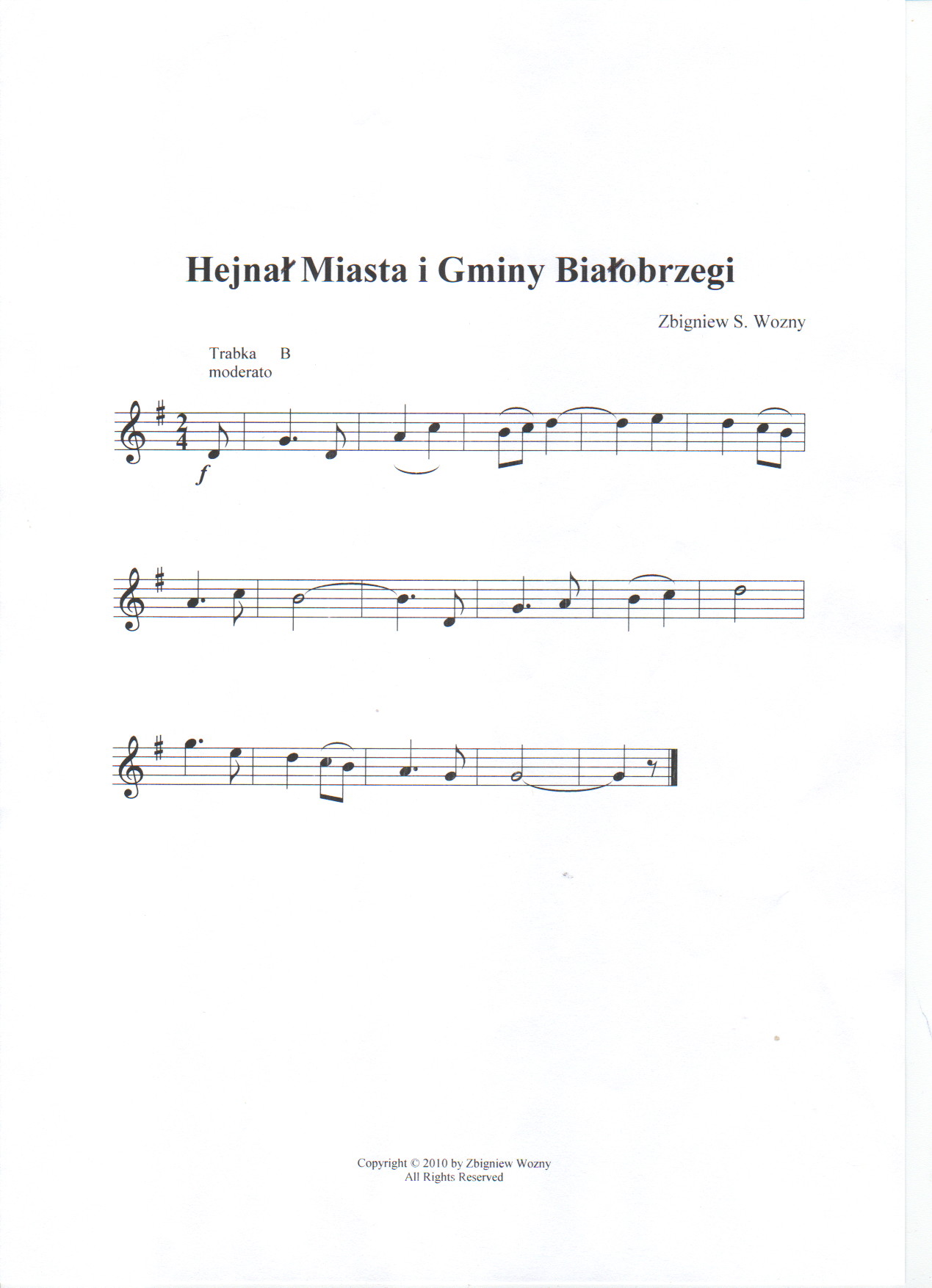 Skomponowany kilkanaście lat temu przez Zbigniewa Stanisława Woźnego – białobrzeskiego kompozytora, wykładowcę muzyki – hejnał to jeden z symboli Białobrzegów. W przeszłości odtwarzany był z wieży białobrzeskiego kościoła.