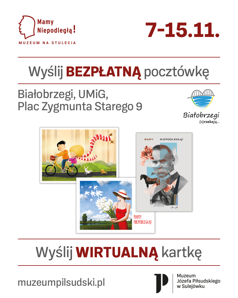 Jeśli chcielibyście osobiście wypełnić i wysłać pocztówkę tradycyjną, to bezpłatnie otrzymacie ją w Urzędzie Miasta i Gminy Białolbrzegi Plac Zygmunta Starego 9 czynnym, od poniedziałku do piątku w godzinach 7.30- 15.30. Kartki mają nadrukowane znaczki pocztowe ważne na terytorium Polski do 31 marca 2021 roku i nie wymagają dodatkowej opłaty pocztowej.